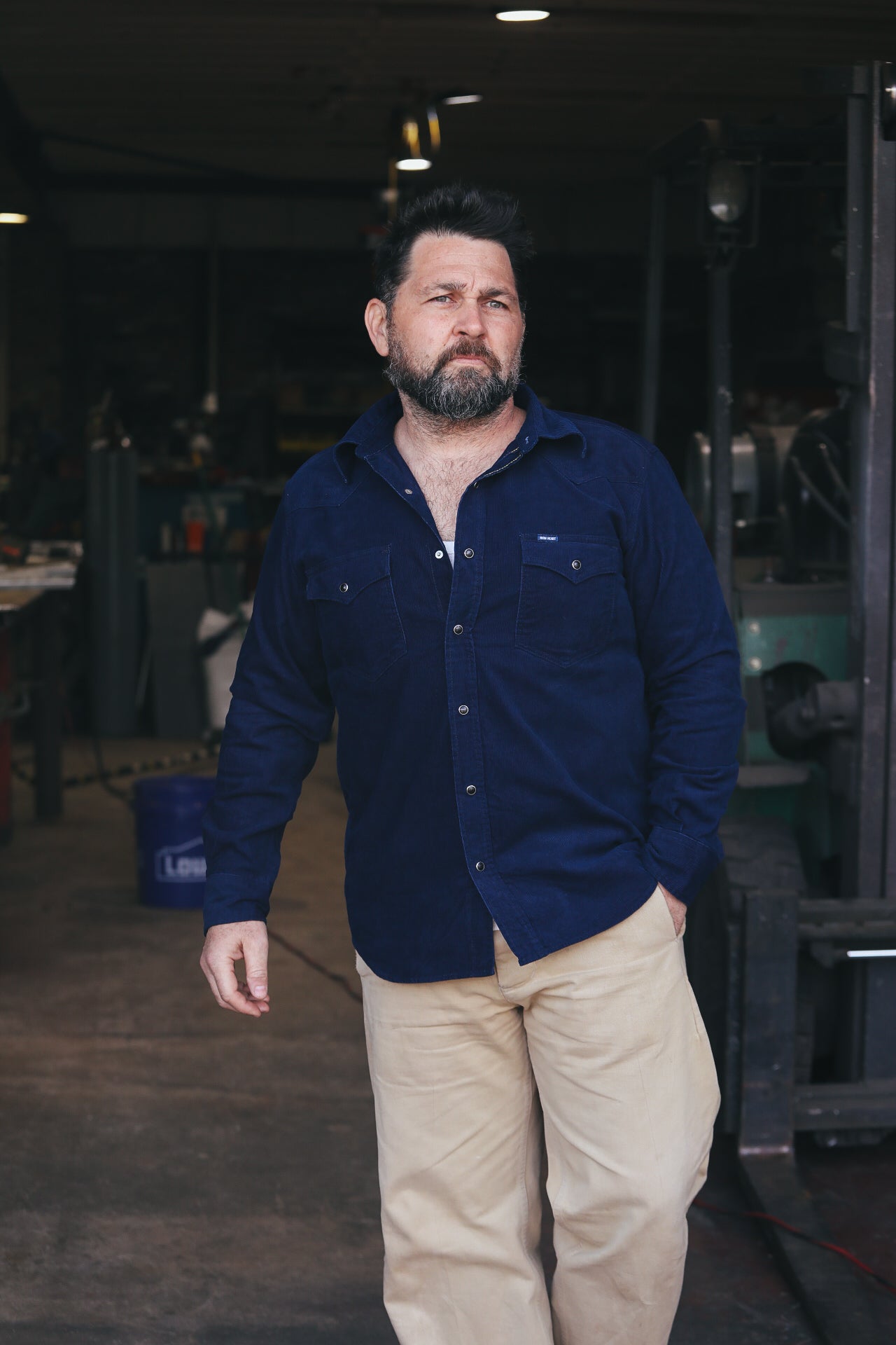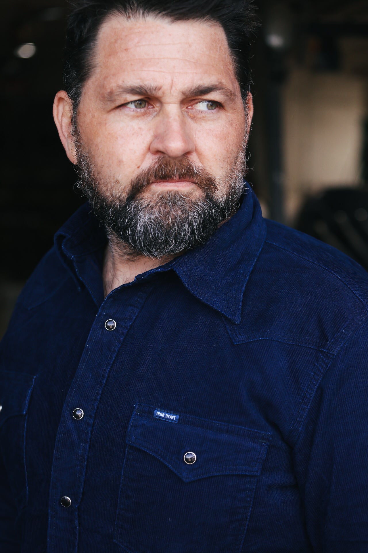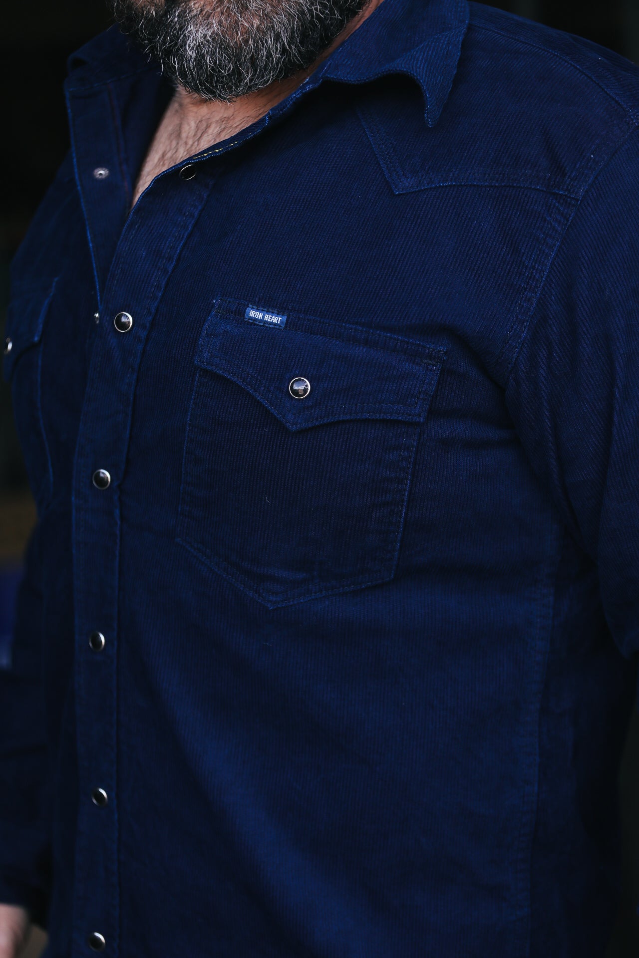 IHSH-438-IND Iron Heart 7.5oz Selvedge Corduroy Western Shirt - Indigo