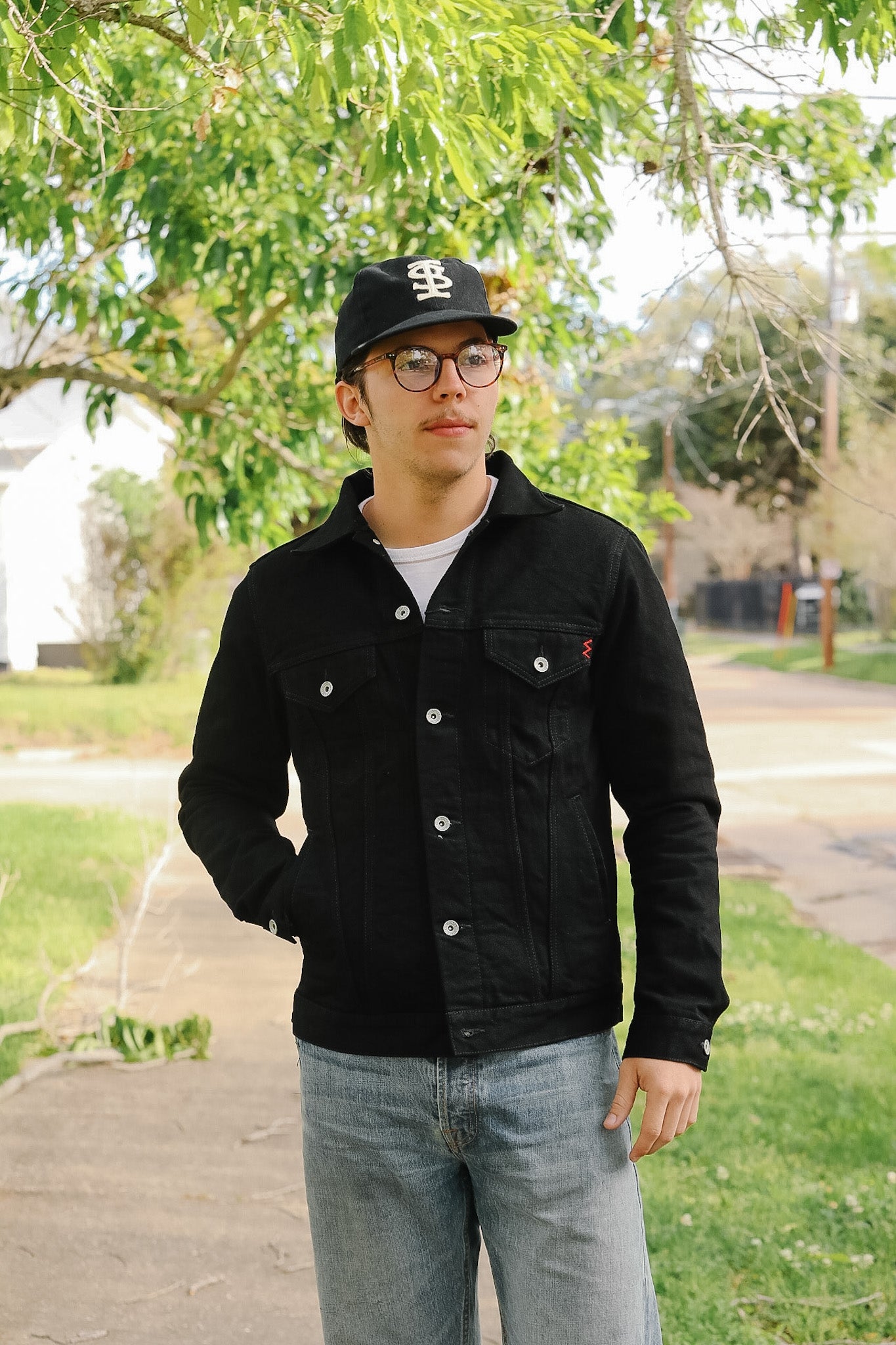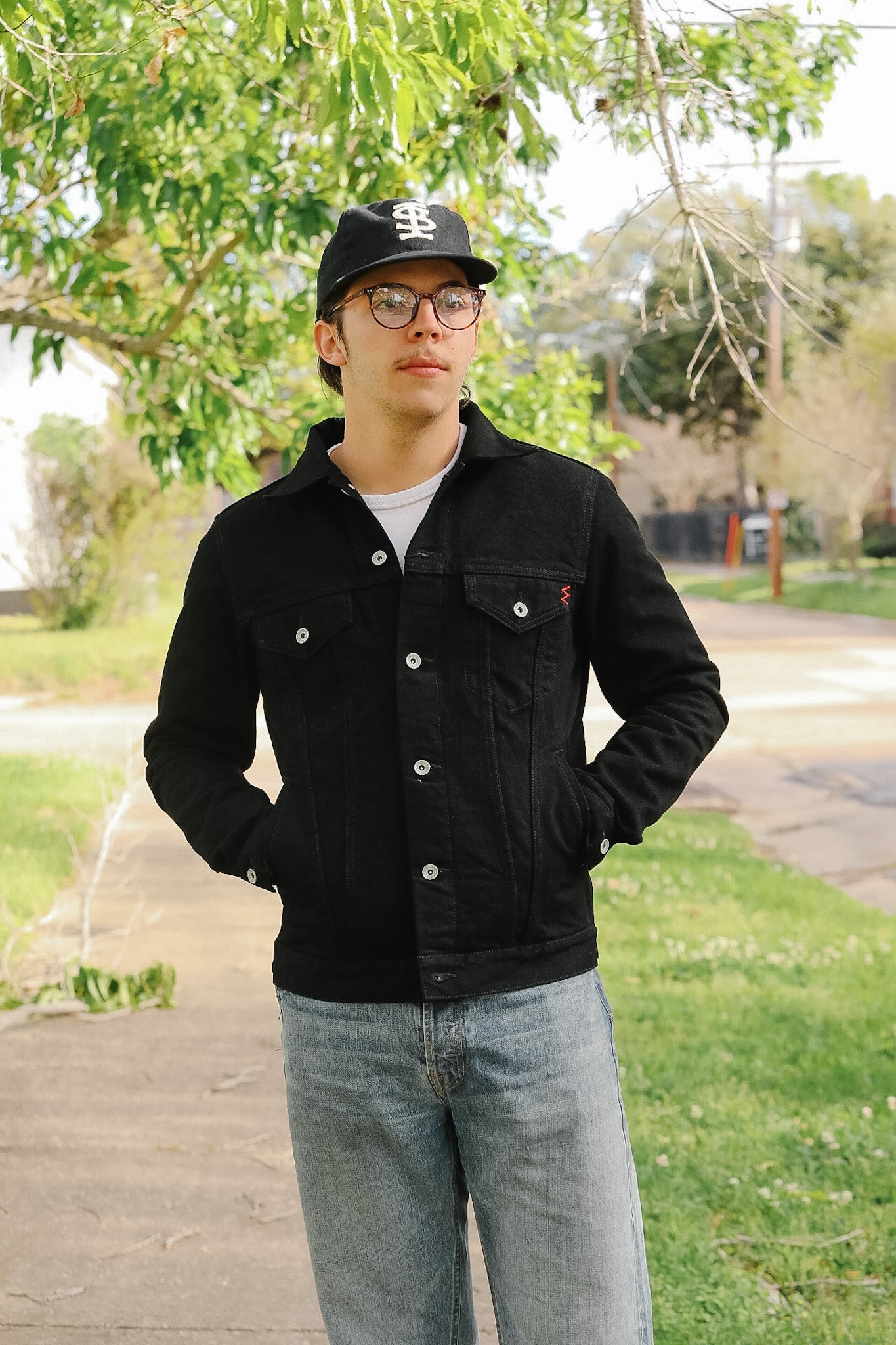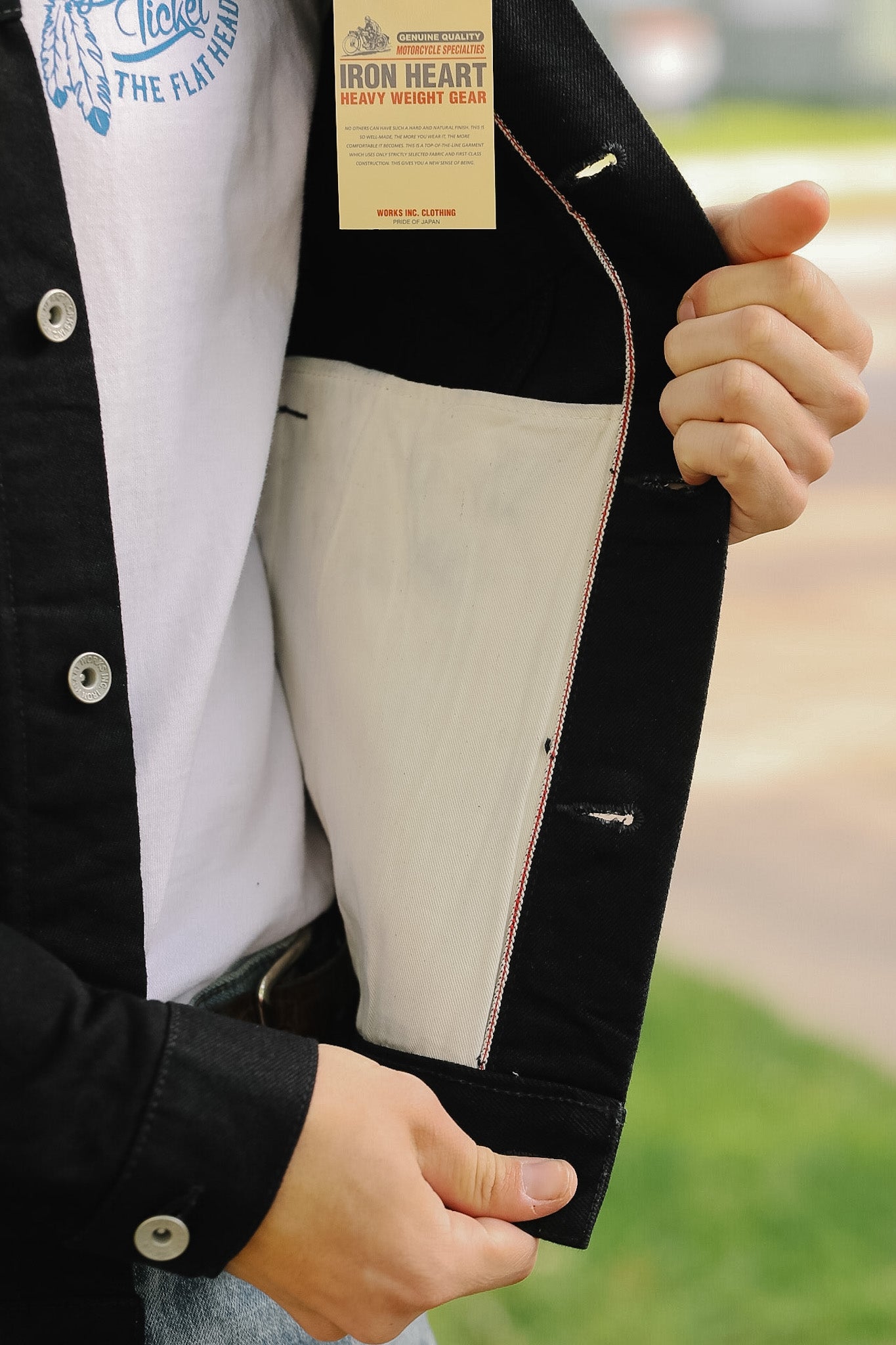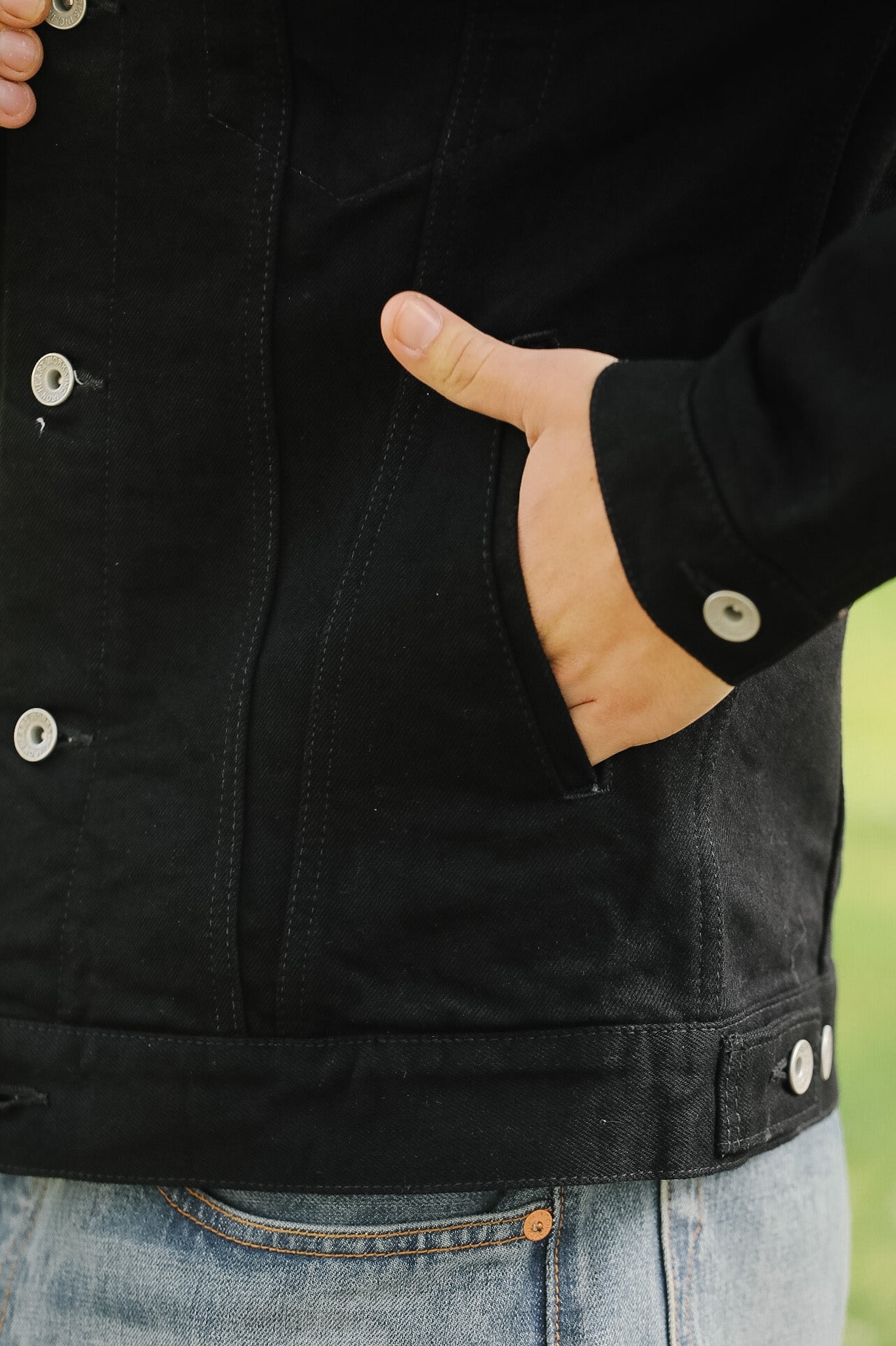 IHJ-86-BLK 14oz Selvedge Denim Modified Type III Jacket - Black/Black