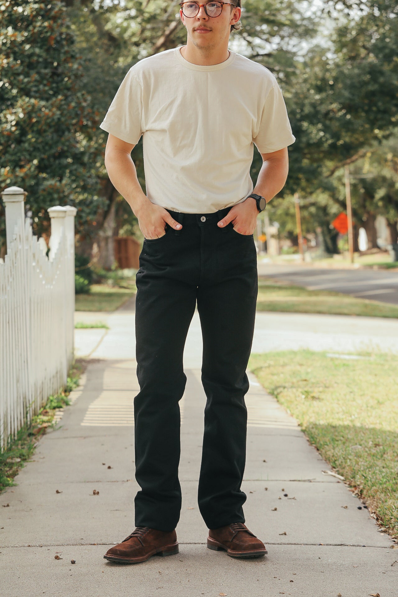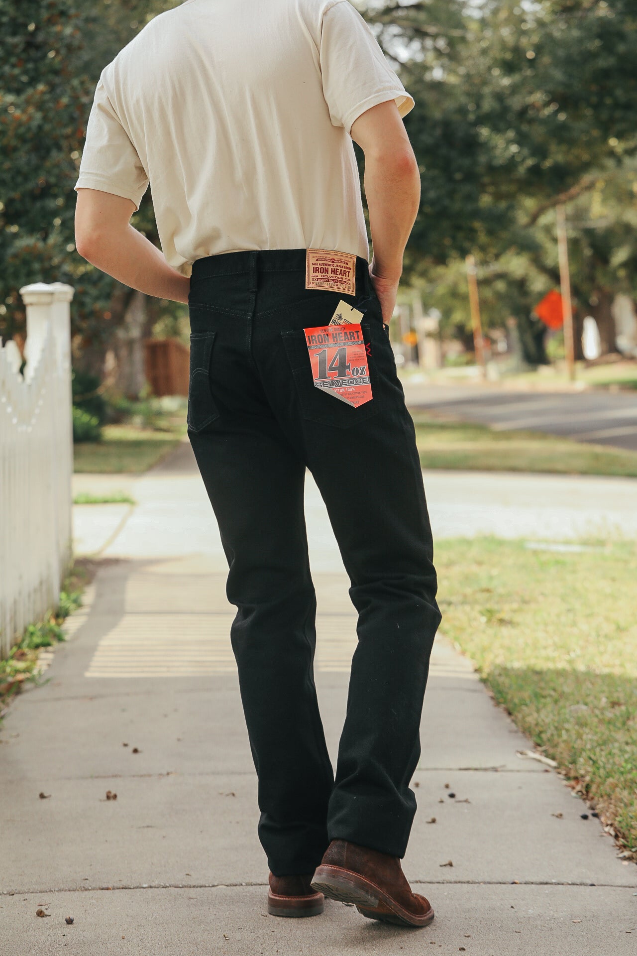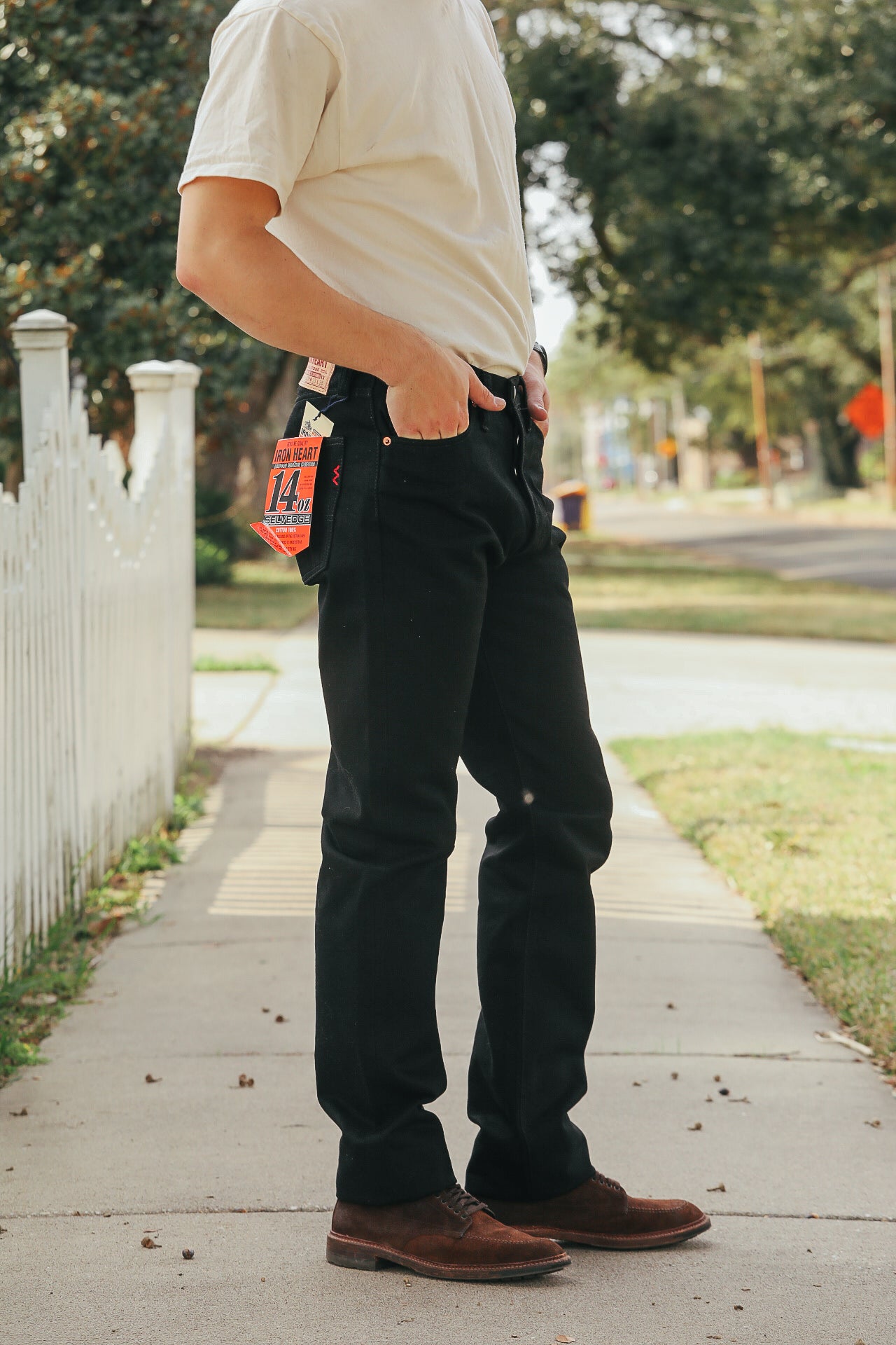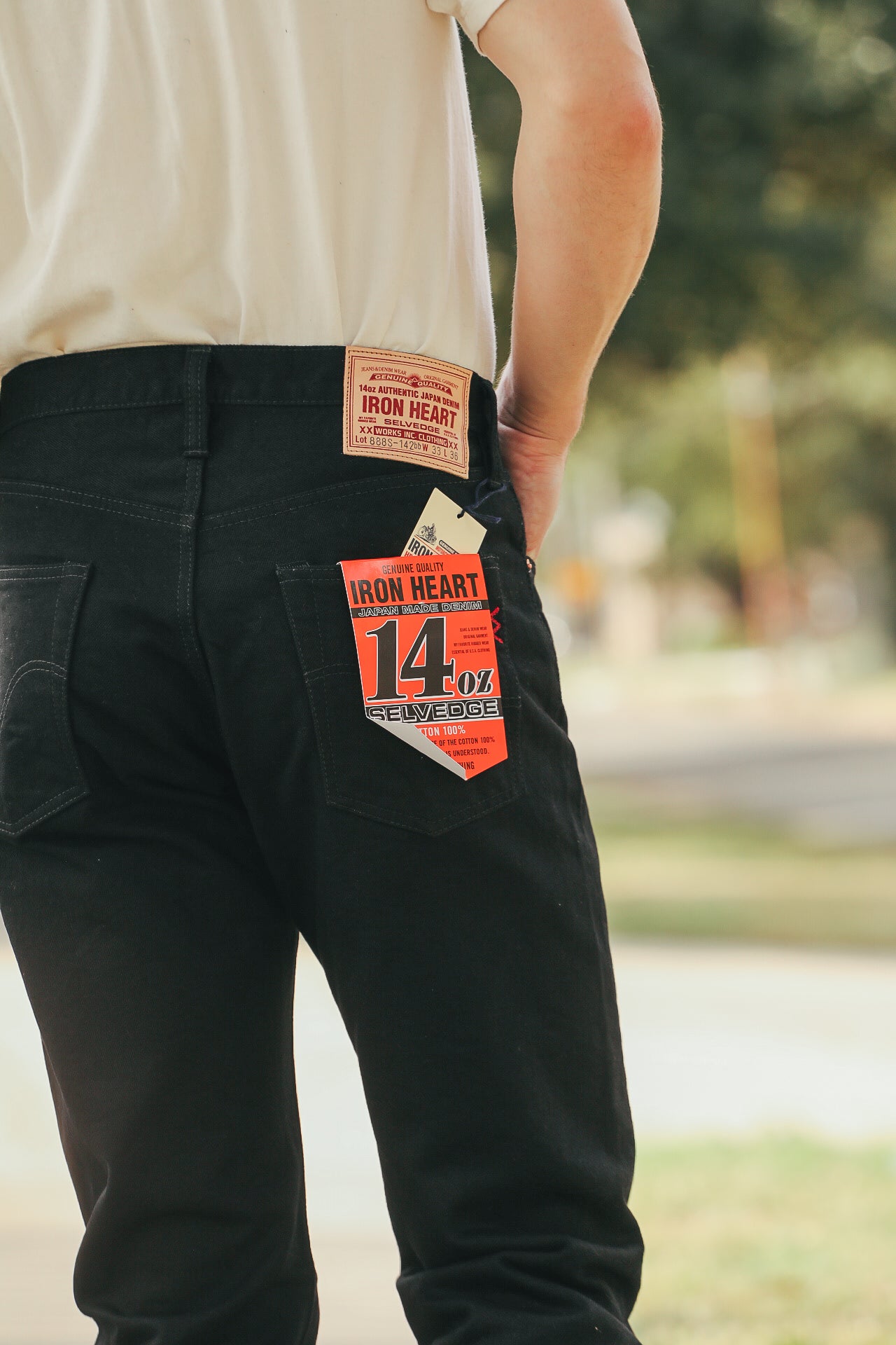 IH-888S-142bb 14oz Selvedge Denim Medium/High Rise Tapered Cut Jeans - Black/Black
