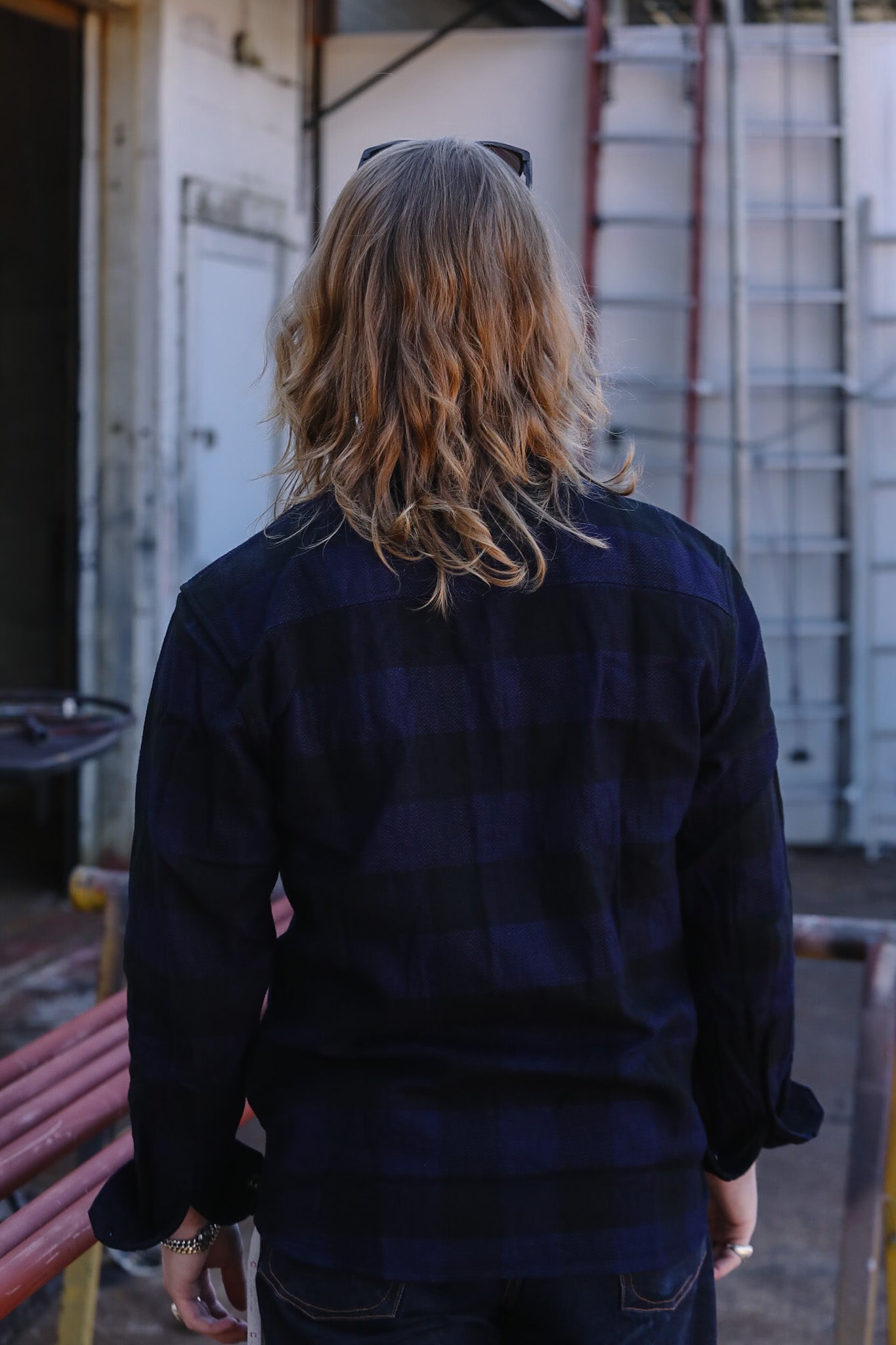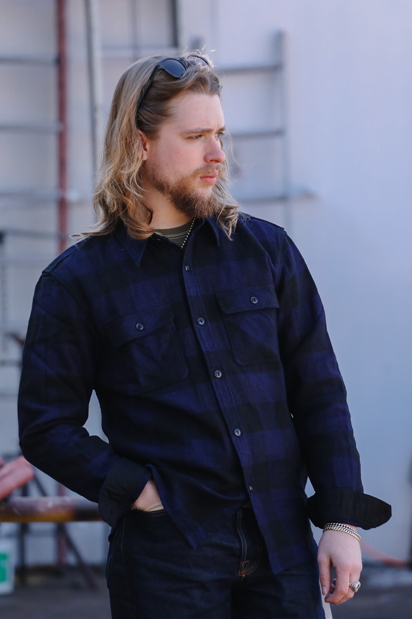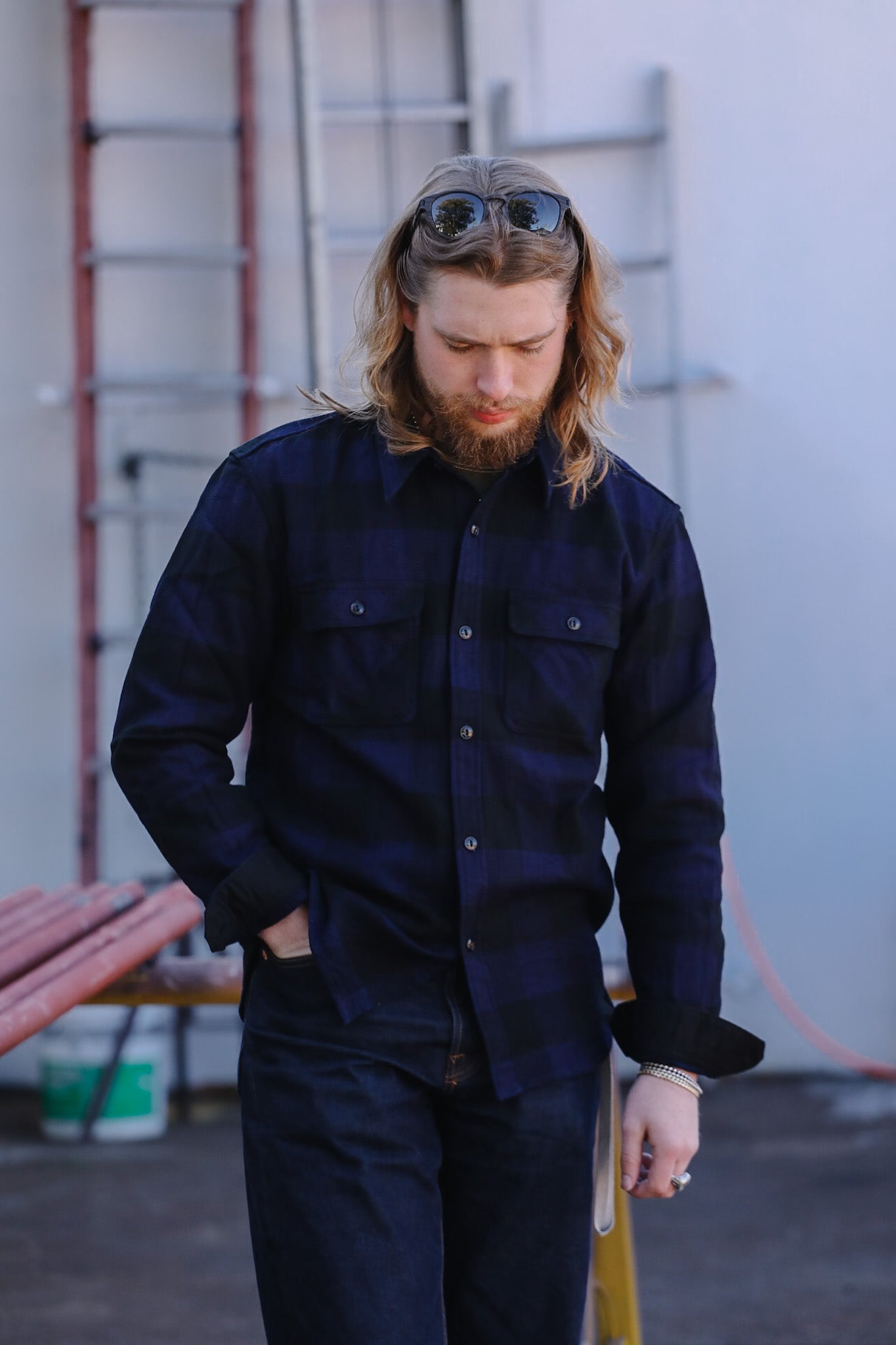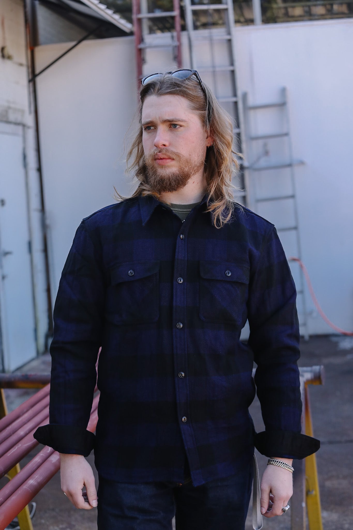FN-SNR-101LSP The Flat Head Block Check Flannel Work Shirt- Indigo