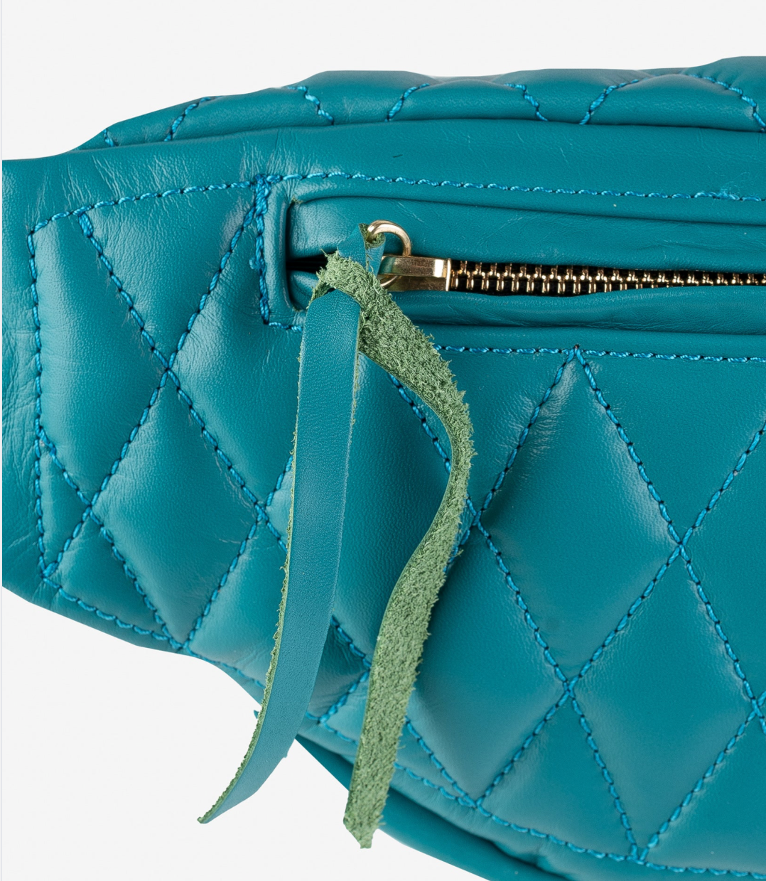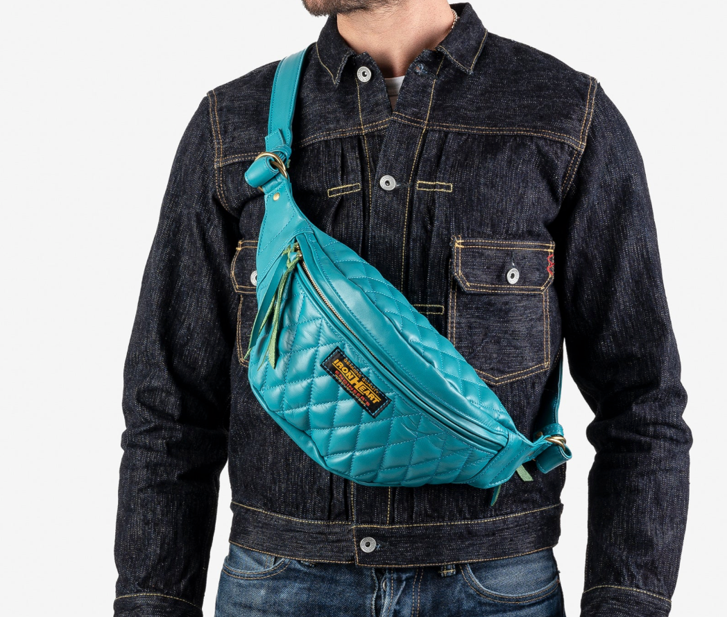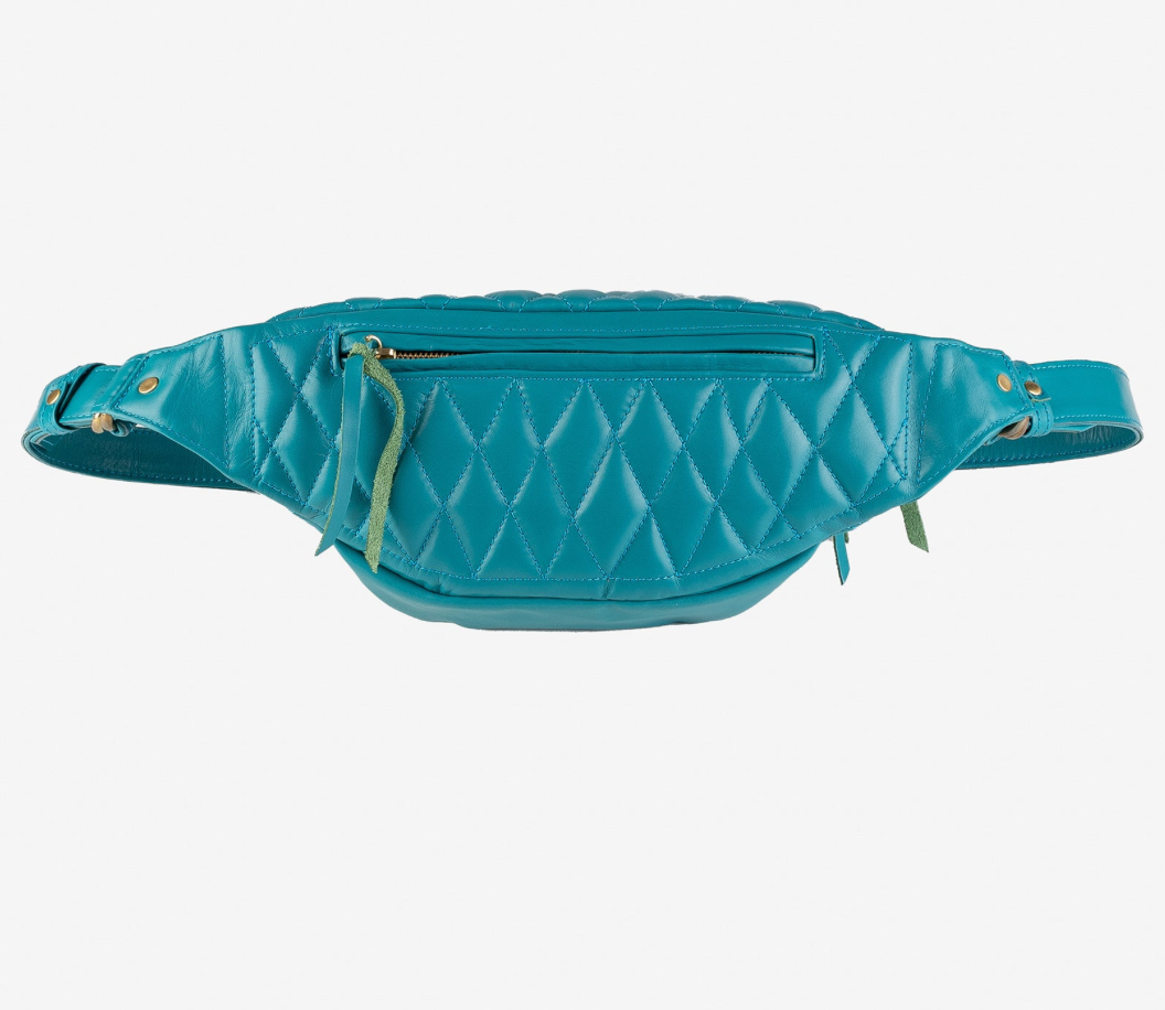 IHE-45-BLU Diamond Stitched Leather Waist Bag - Blue