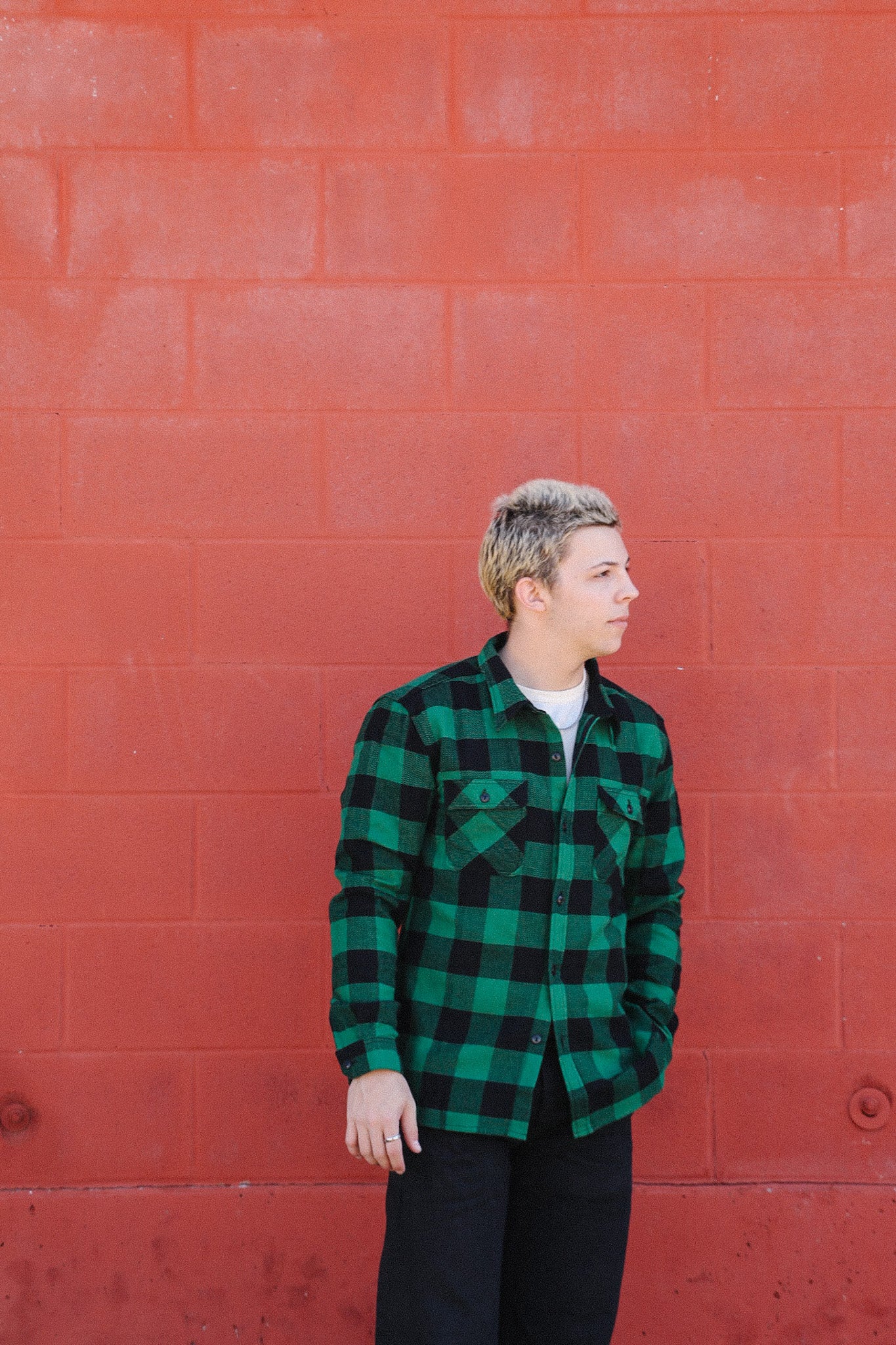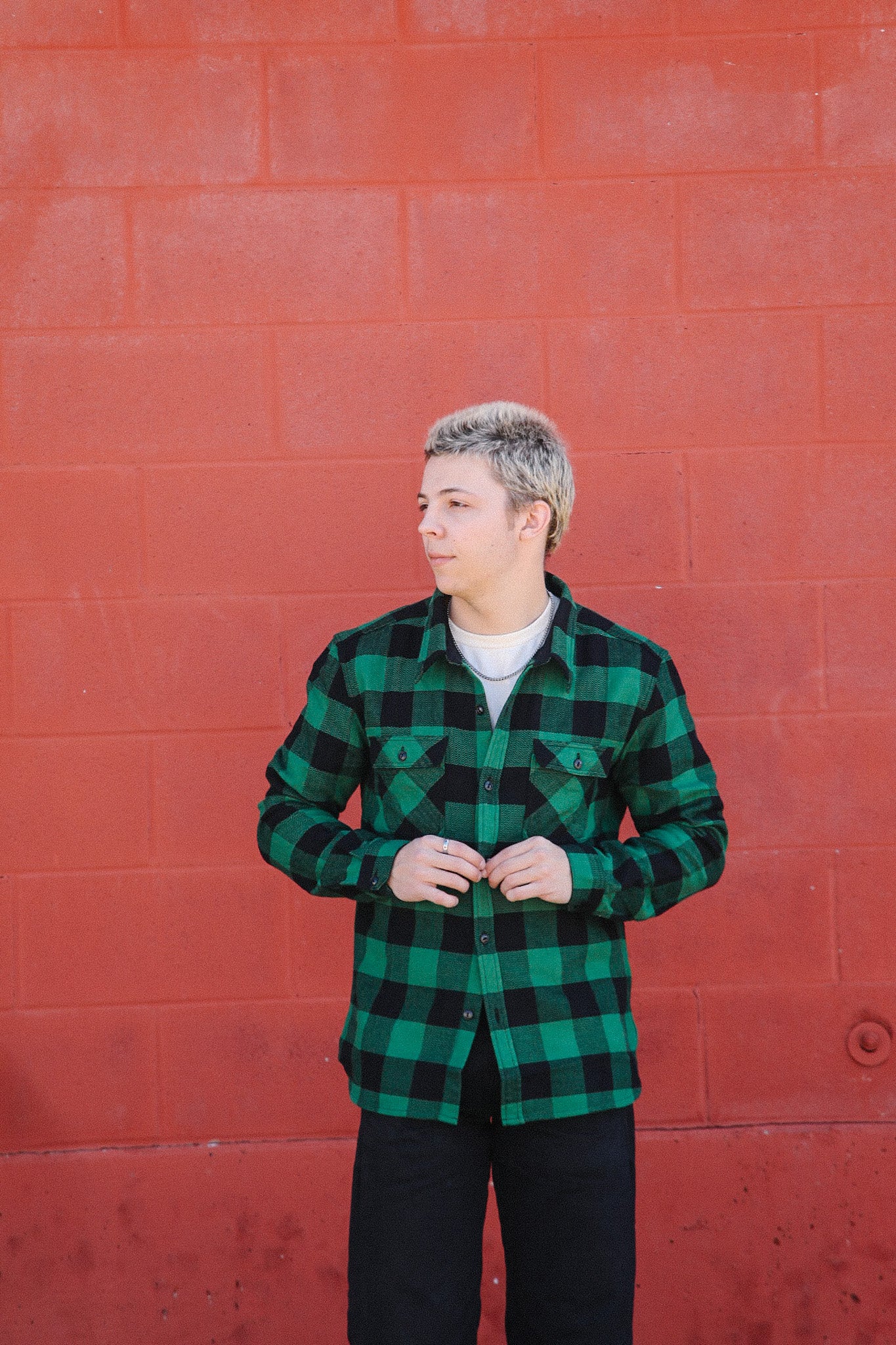 Block Check Flannel Work Shirt- Black/Green ( FN-SNR-101L)