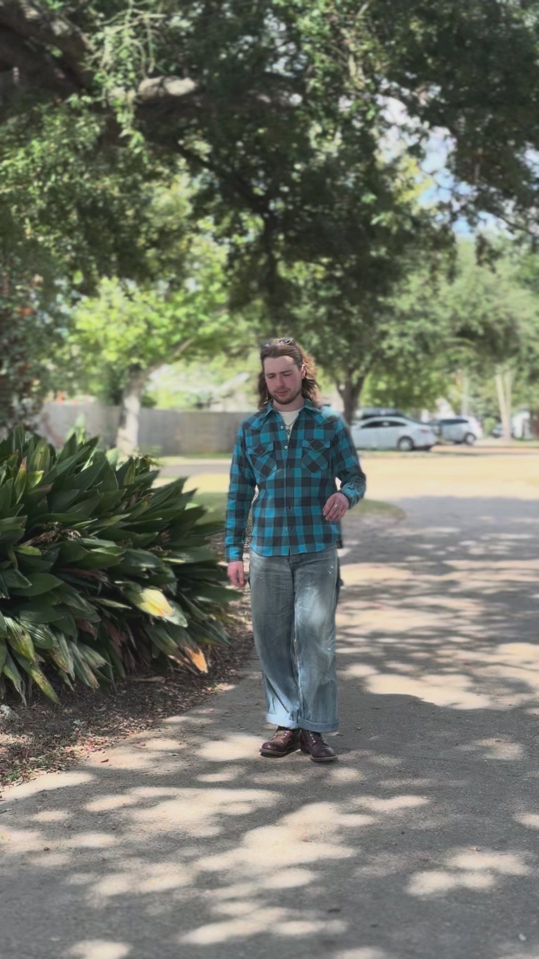 Iron Heart x ISP Ultra Heavy Flannel Buffalo Check Western Shirt - Turquoise/Grey IHSH-101-TG