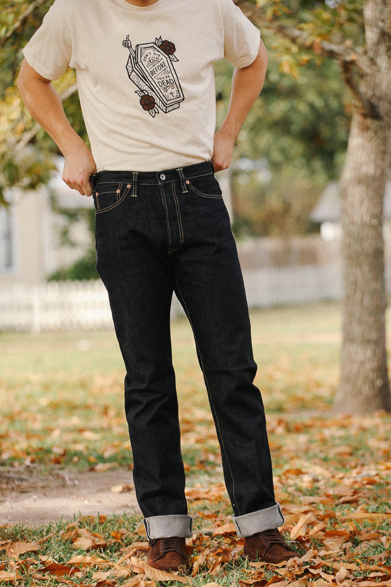 666 21oz Selvedge Denim Slim Straight Cut Jeans - Superblack (Fades To Grey) IH-666S-SBG