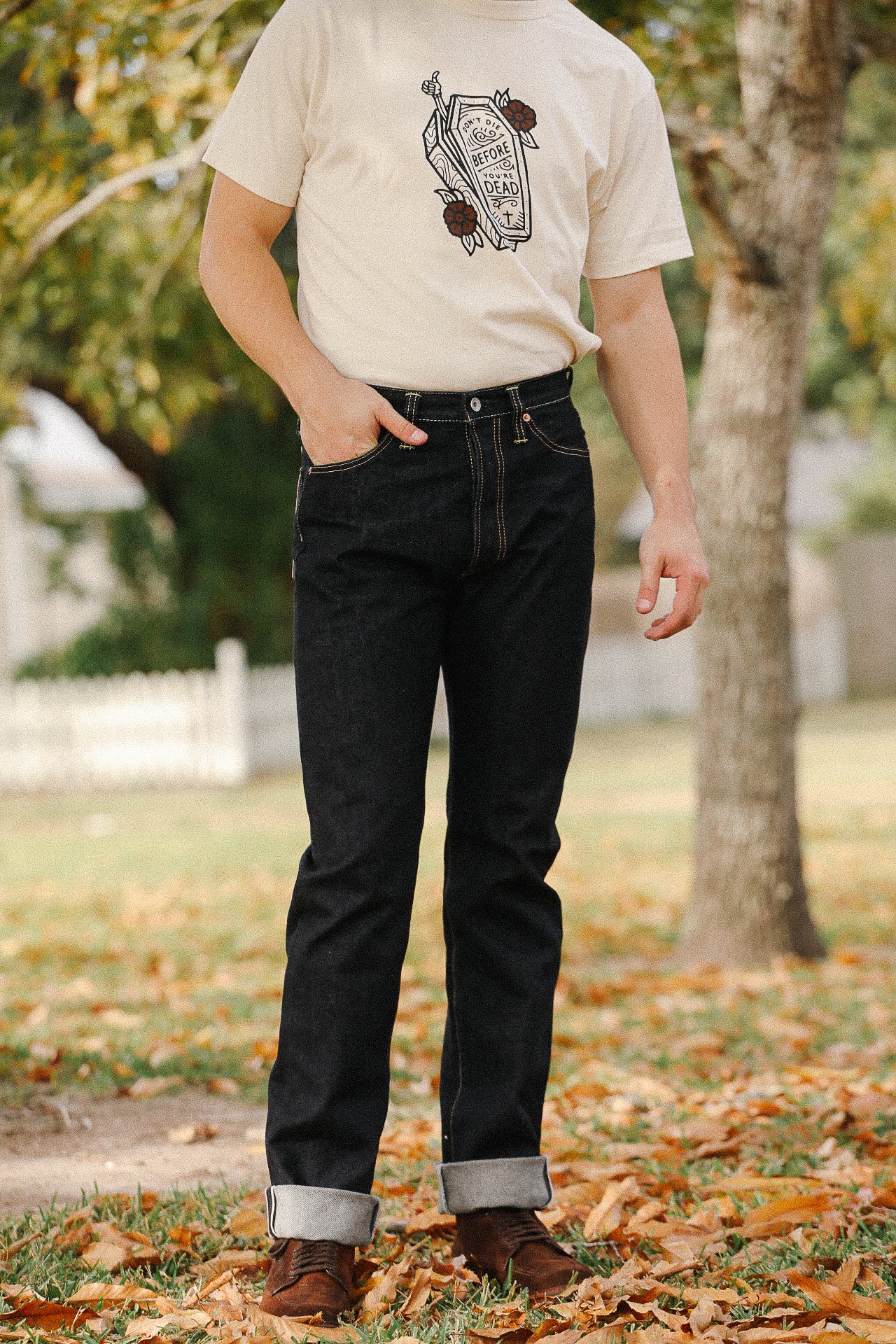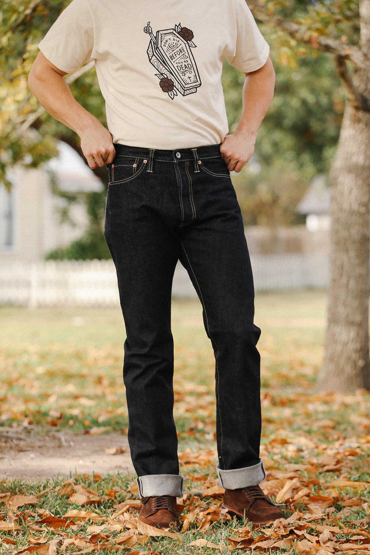 14oz Selvedge Denim Straight Cut Jeans 634S - Black/Black IH-634S-142bb