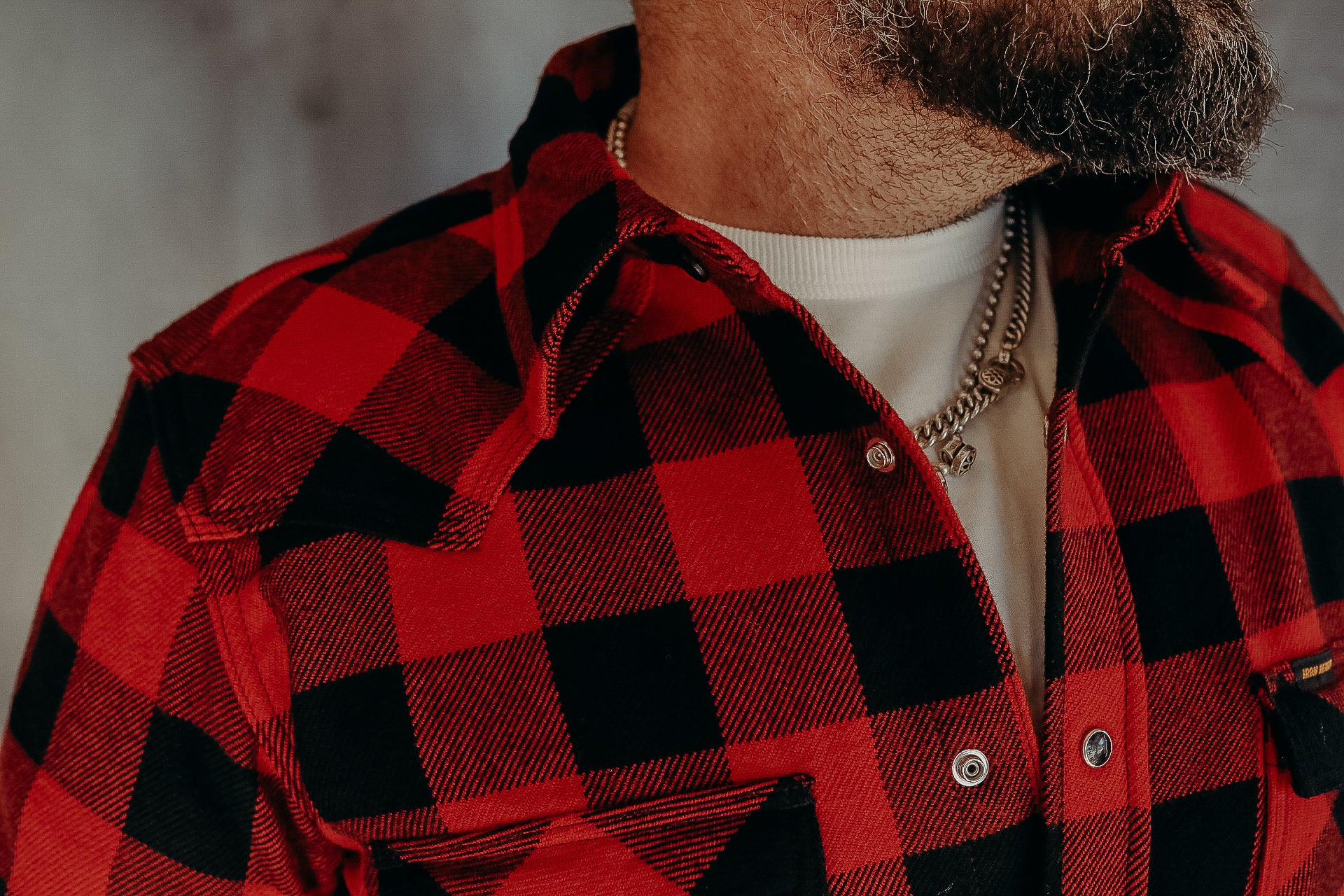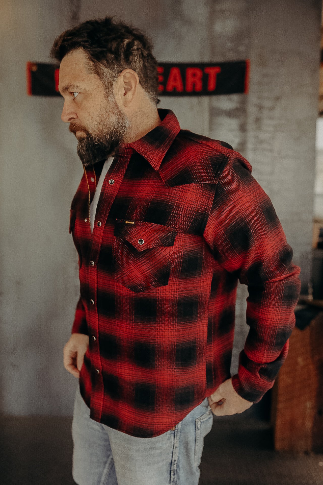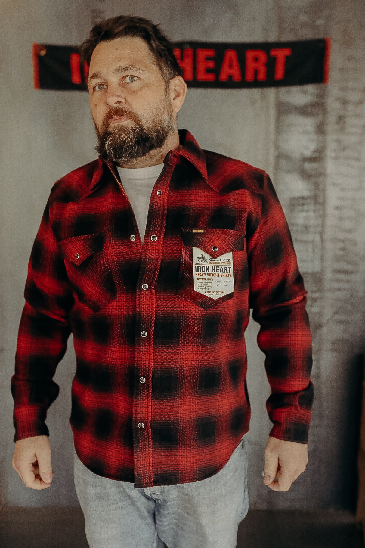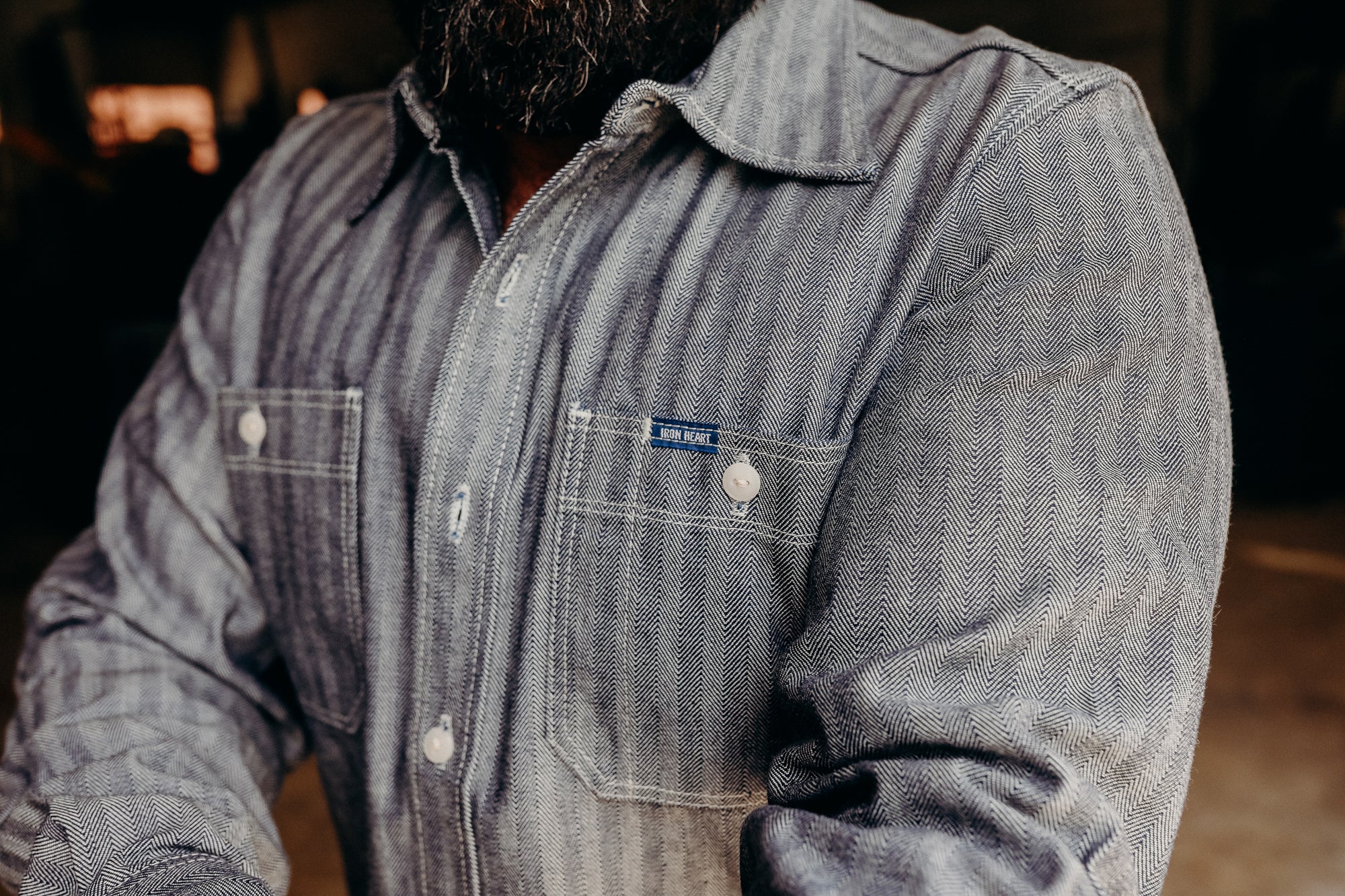 Originally designed with bikers in mind, Iron Heart's focus on durable and robust clothing continues to influence its design and construction. Haraki-san ensures that the garments meet the preferences of riders, while also appealing to a broader audience. Most Iron Heart pieces are crafted from heavyweight fabrics to provide durability and some level of protection for motorcyclists. The brand uses classic materials and styles, including flannels, denim, and chambrays for shirts, and draws inspiration from military and traditional riding jackets for its outerwear. Notably, some designs, such as the 25oz XHS (extra heavy selvedge) denim jeans, push the limits of what can be woven and sewn, embodying their philosophy of "over-engineered is our starting point."