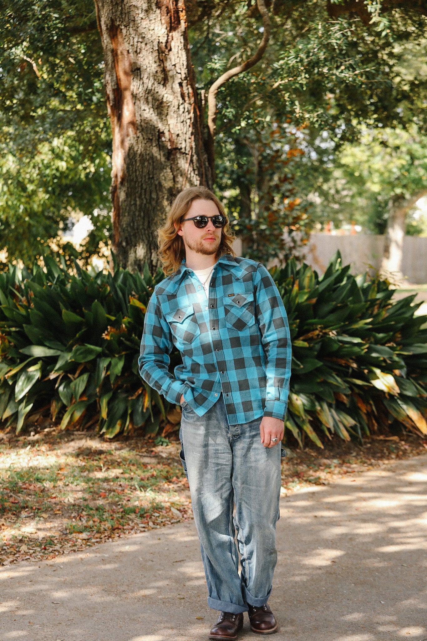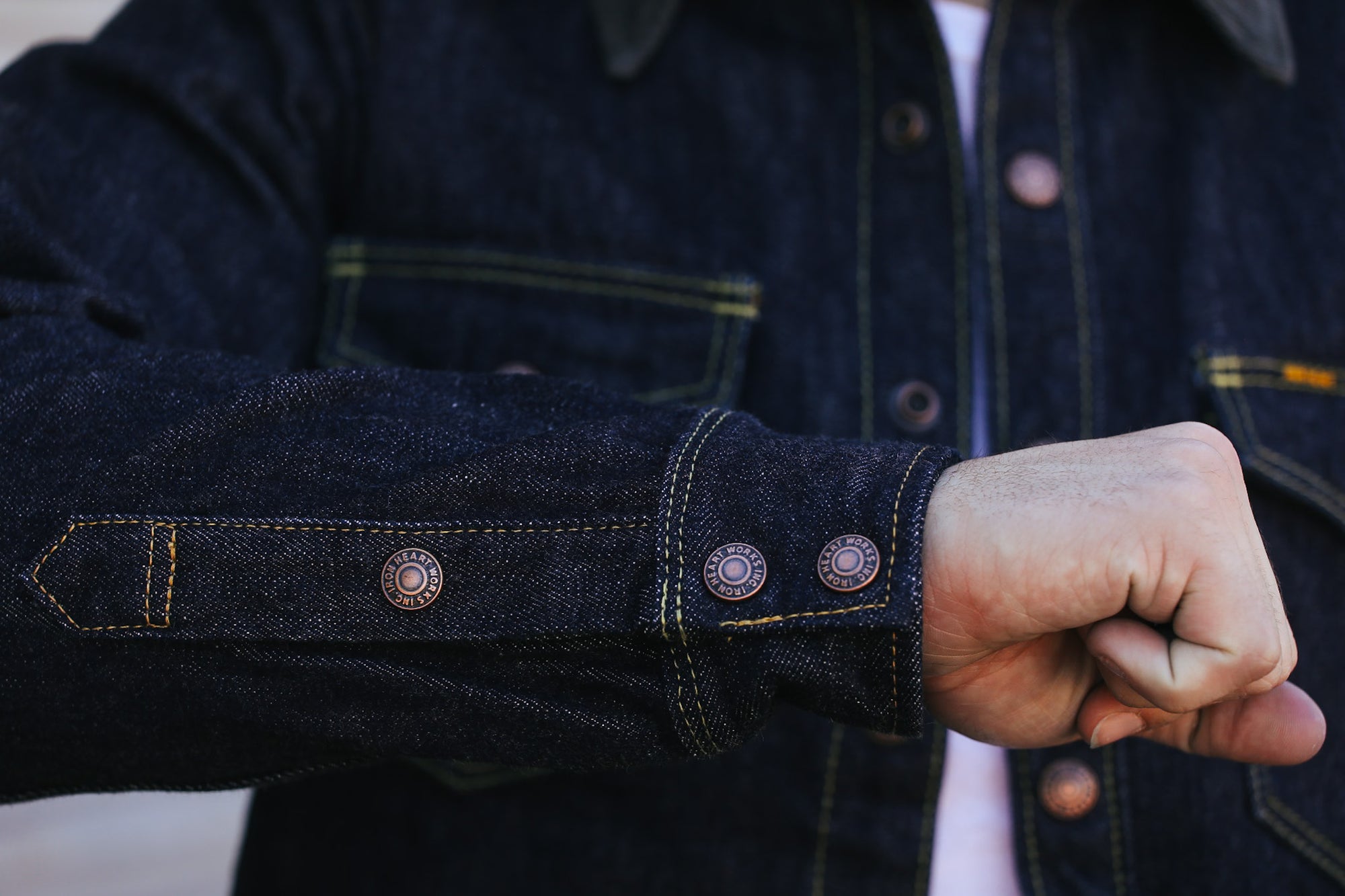 Originally designed with bikers in mind, Iron Heart's focus on durable and robust clothing continues to influence its design and construction. Haraki-san ensures that the garments meet the preferences of riders, while also appealing to a broader audience. Most Iron Heart pieces are crafted from heavyweight fabrics to provide durability and some level of protection for motorcyclists. The brand uses classic materials and styles, including flannels, denim, and chambrays for shirts, and draws inspiration from military and traditional riding jackets for its outerwear. Notably, some designs, such as the 25oz XHS (extra heavy selvedge) denim jeans, push the limits of what can be woven and sewn, embodying their philosophy of "over-engineered is our starting point."