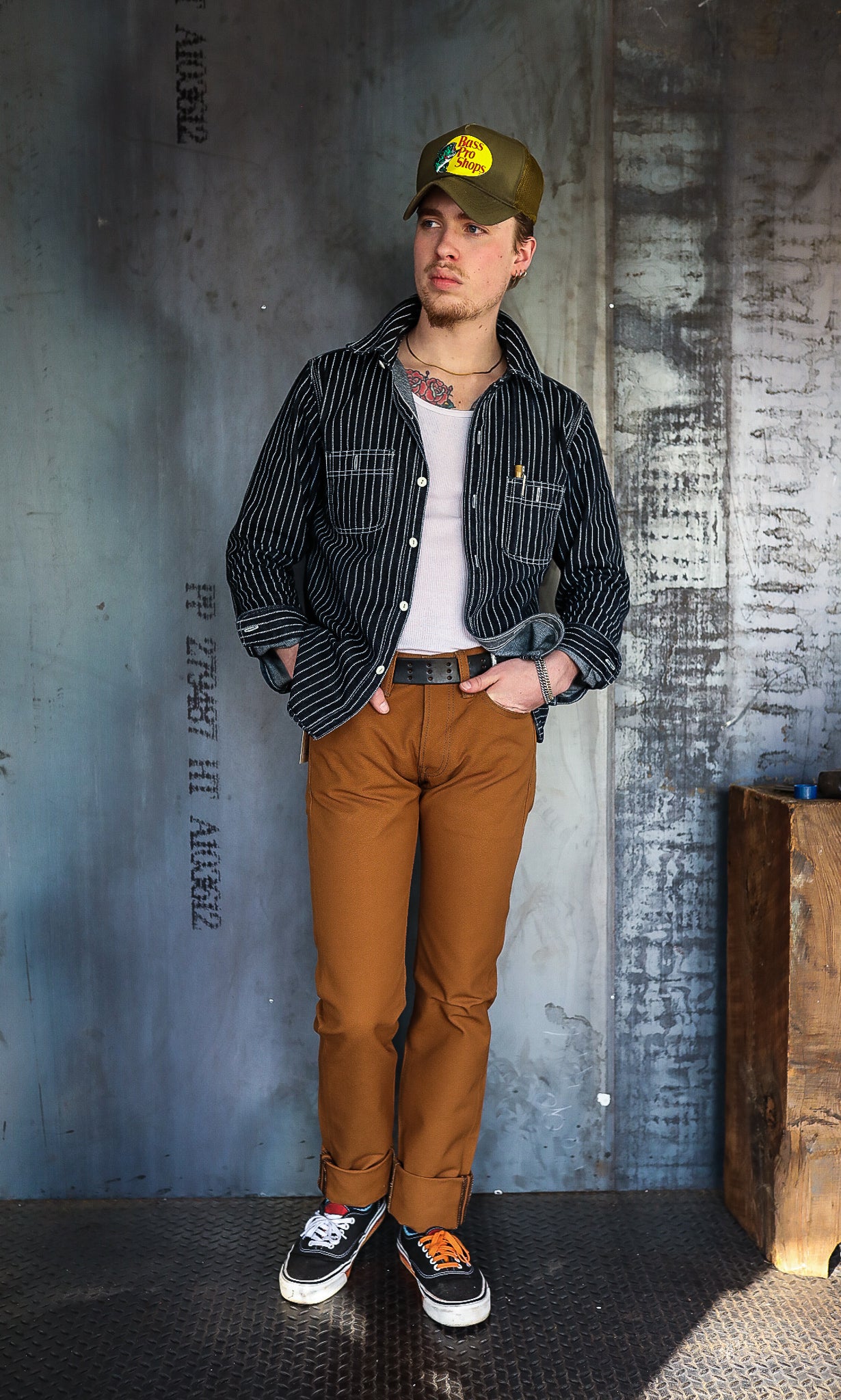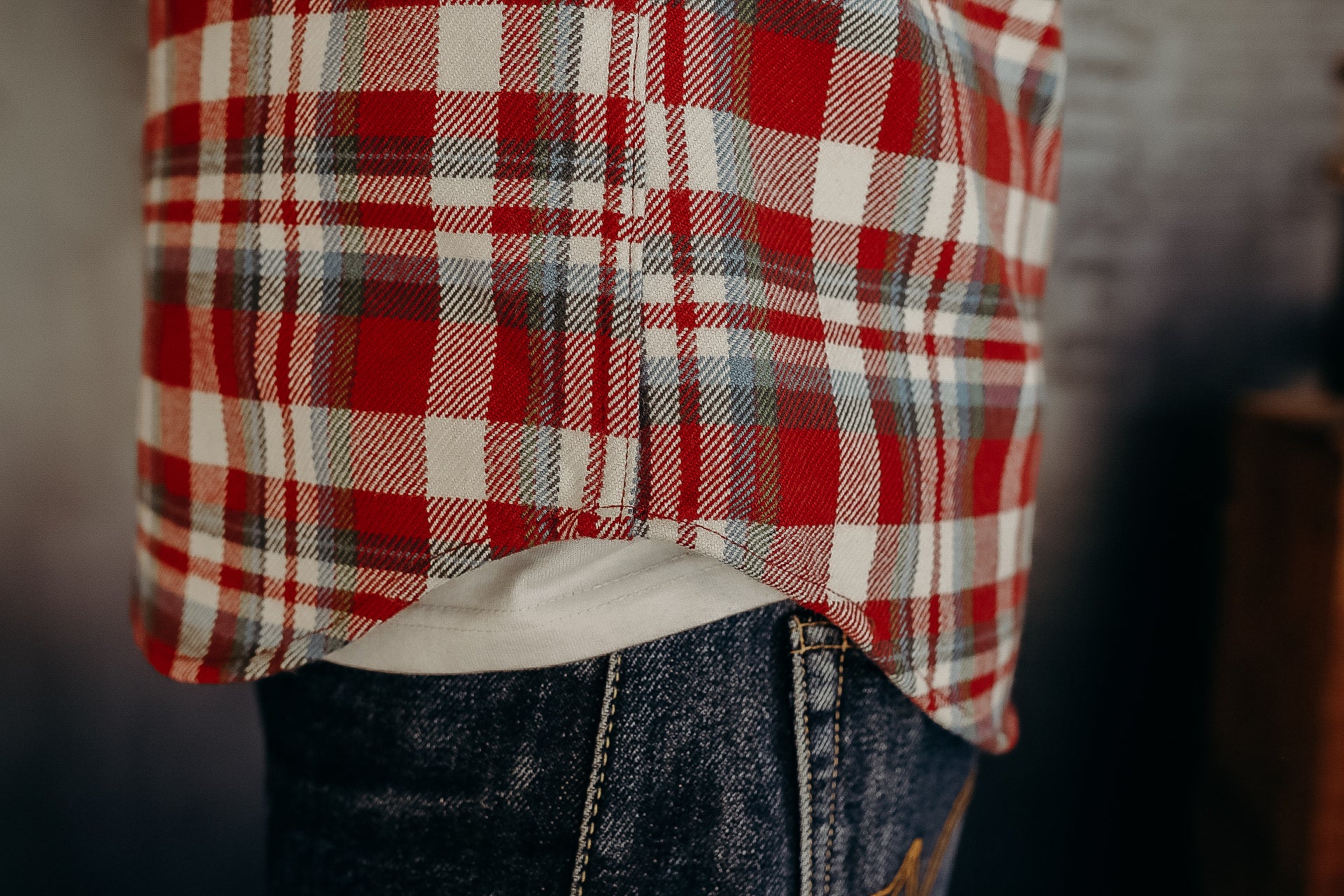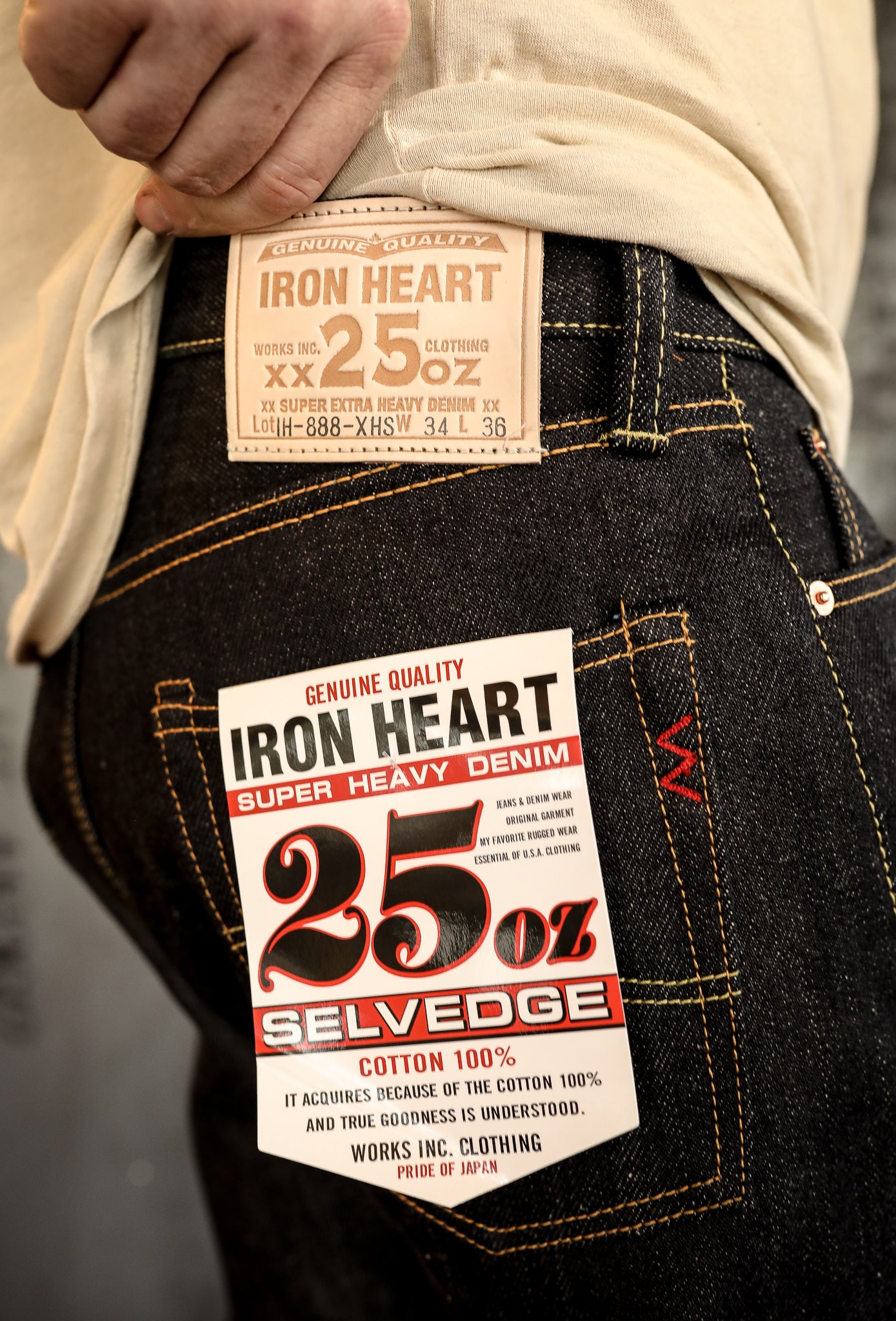 Originally designed with bikers in mind, Iron Heart's focus on durable and robust clothing continues to influence its design and construction. Haraki-san ensures that the garments meet the preferences of riders, while also appealing to a broader audience. Most Iron Heart pieces are crafted from heavyweight fabrics to provide durability and some level of protection for motorcyclists. The brand uses classic materials and styles, including flannels, denim, and chambrays for shirts, and draws inspiration from military and traditional riding jackets for its outerwear. Notably, some designs, such as the 25oz XHS (extra heavy selvedge) denim jeans, push the limits of what can be woven and sewn, embodying their philosophy of "over-engineered is our starting point."