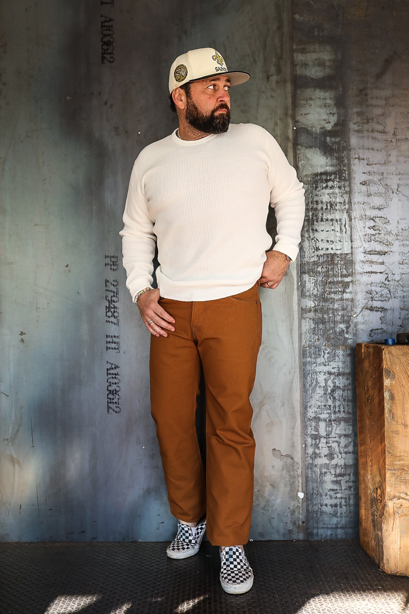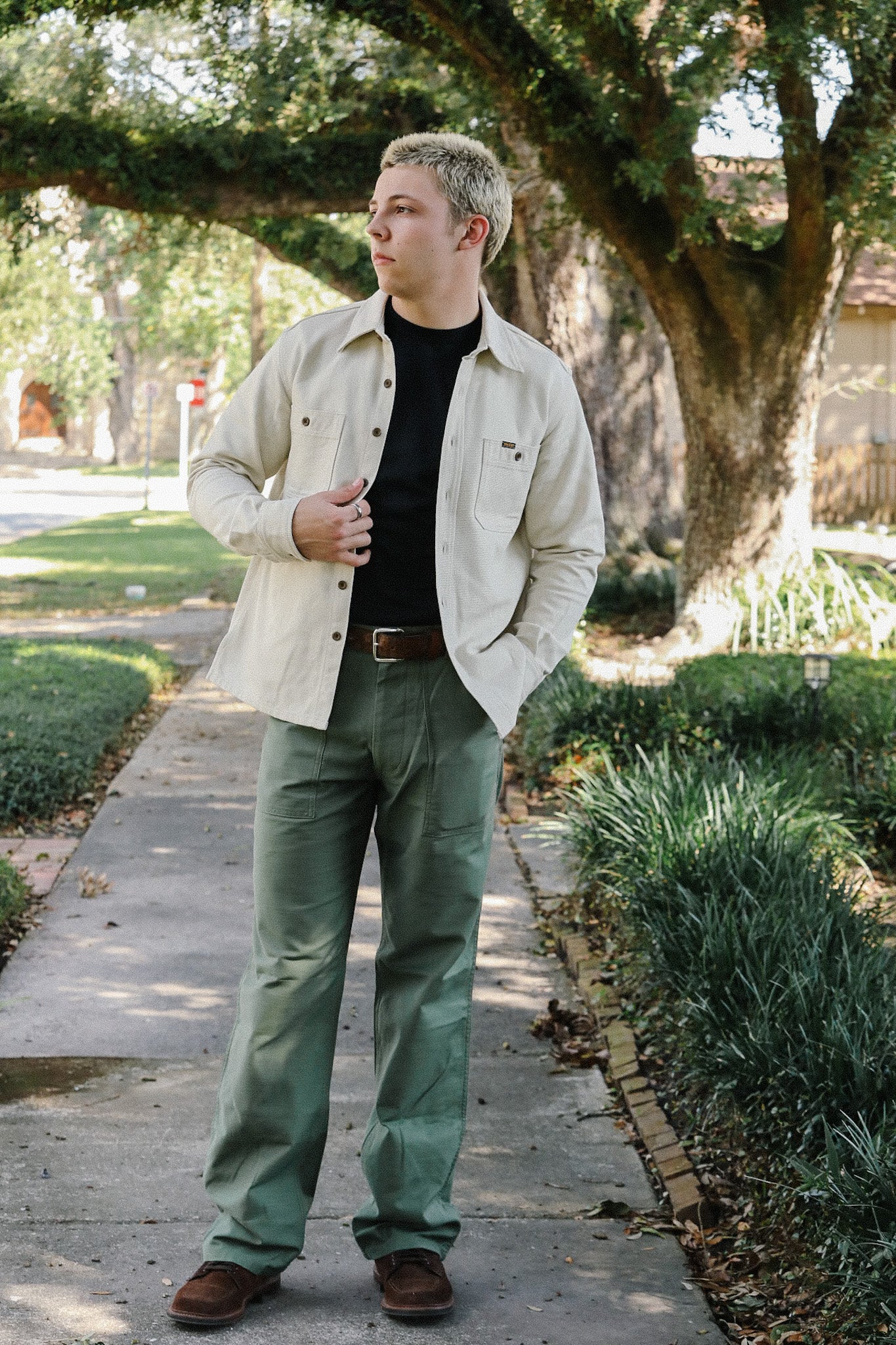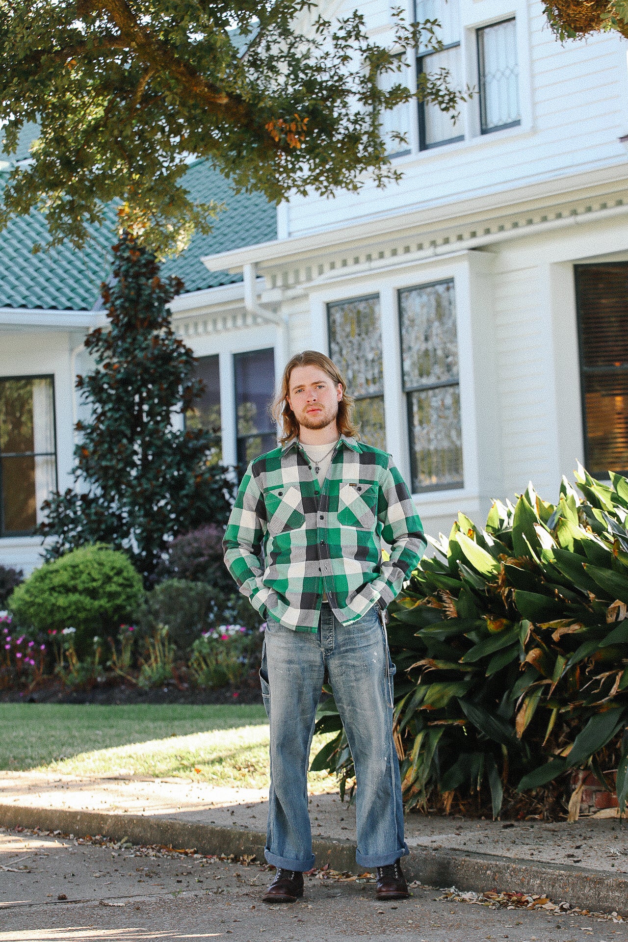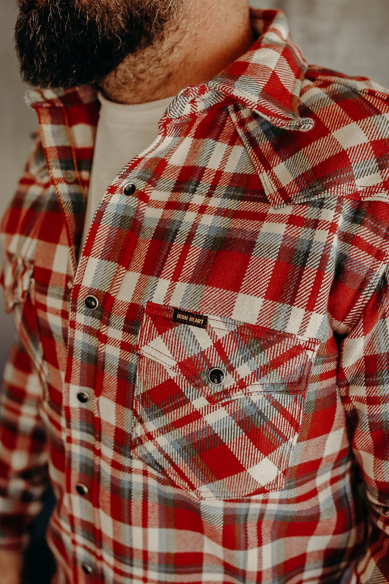 Originally designed with bikers in mind, Iron Heart's focus on durable and robust clothing continues to influence its design and construction. Haraki-san ensures that the garments meet the preferences of riders, while also appealing to a broader audience. Most Iron Heart pieces are crafted from heavyweight fabrics to provide durability and some level of protection for motorcyclists. The brand uses classic materials and styles, including flannels, denim, and chambrays for shirts, and draws inspiration from military and traditional riding jackets for its outerwear. Notably, some designs, such as the 25oz XHS (extra heavy selvedge) denim jeans, push the limits of what can be woven and sewn, embodying their philosophy of "over-engineered is our starting point."