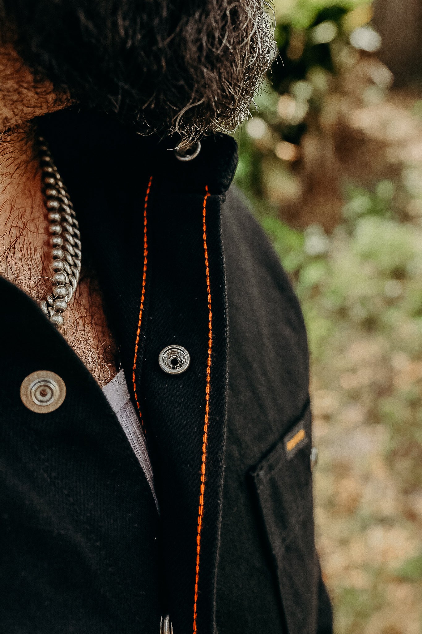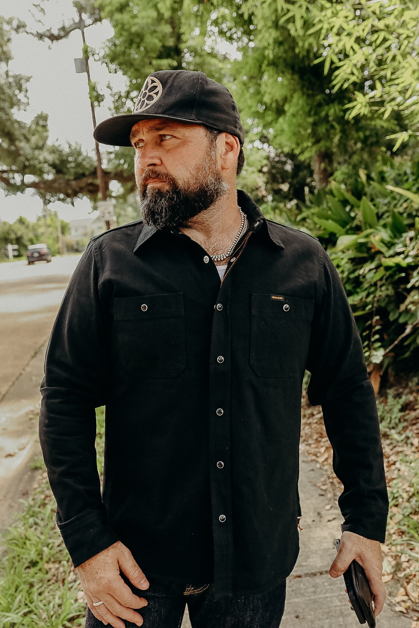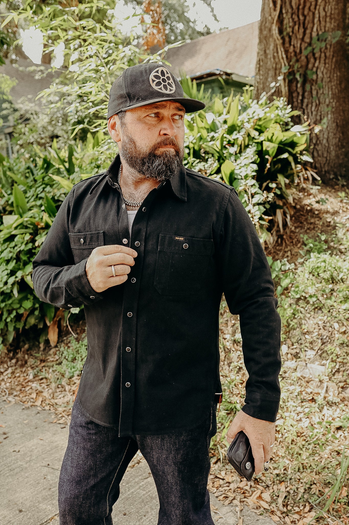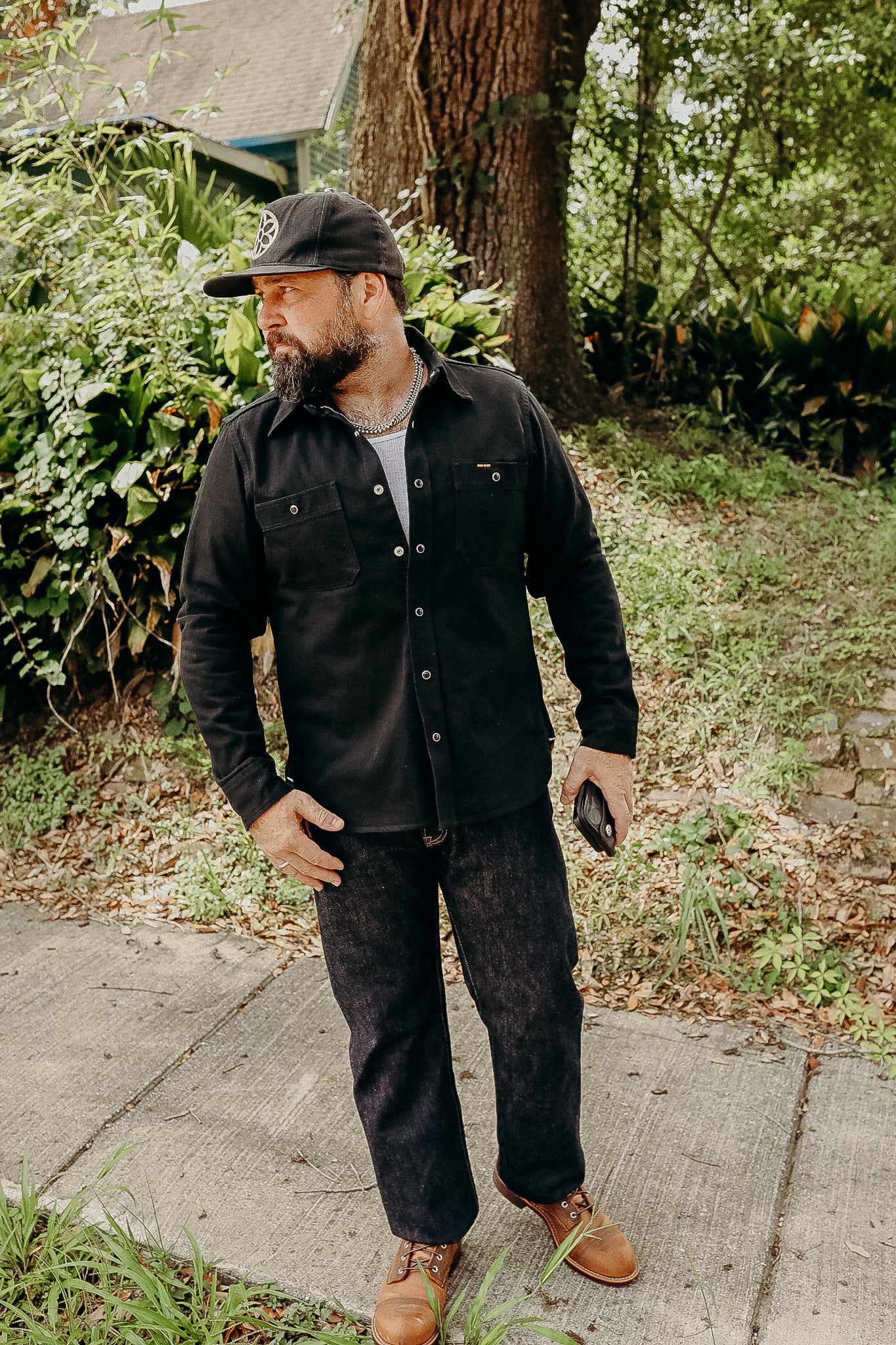 Originally designed with bikers in mind, Iron Heart's focus on durable and robust clothing continues to influence its design and construction. Haraki-san ensures that the garments meet the preferences of riders, while also appealing to a broader audience. Most Iron Heart pieces are crafted from heavyweight fabrics to provide durability and some level of protection for motorcyclists. The brand uses classic materials and styles, including flannels, denim, and chambrays for shirts, and draws inspiration from military and traditional riding jackets for its outerwear. Notably, some designs, such as the 25oz XHS (extra heavy selvedge) denim jeans, push the limits of what can be woven and sewn, embodying their philosophy of "over-engineered is our starting point."