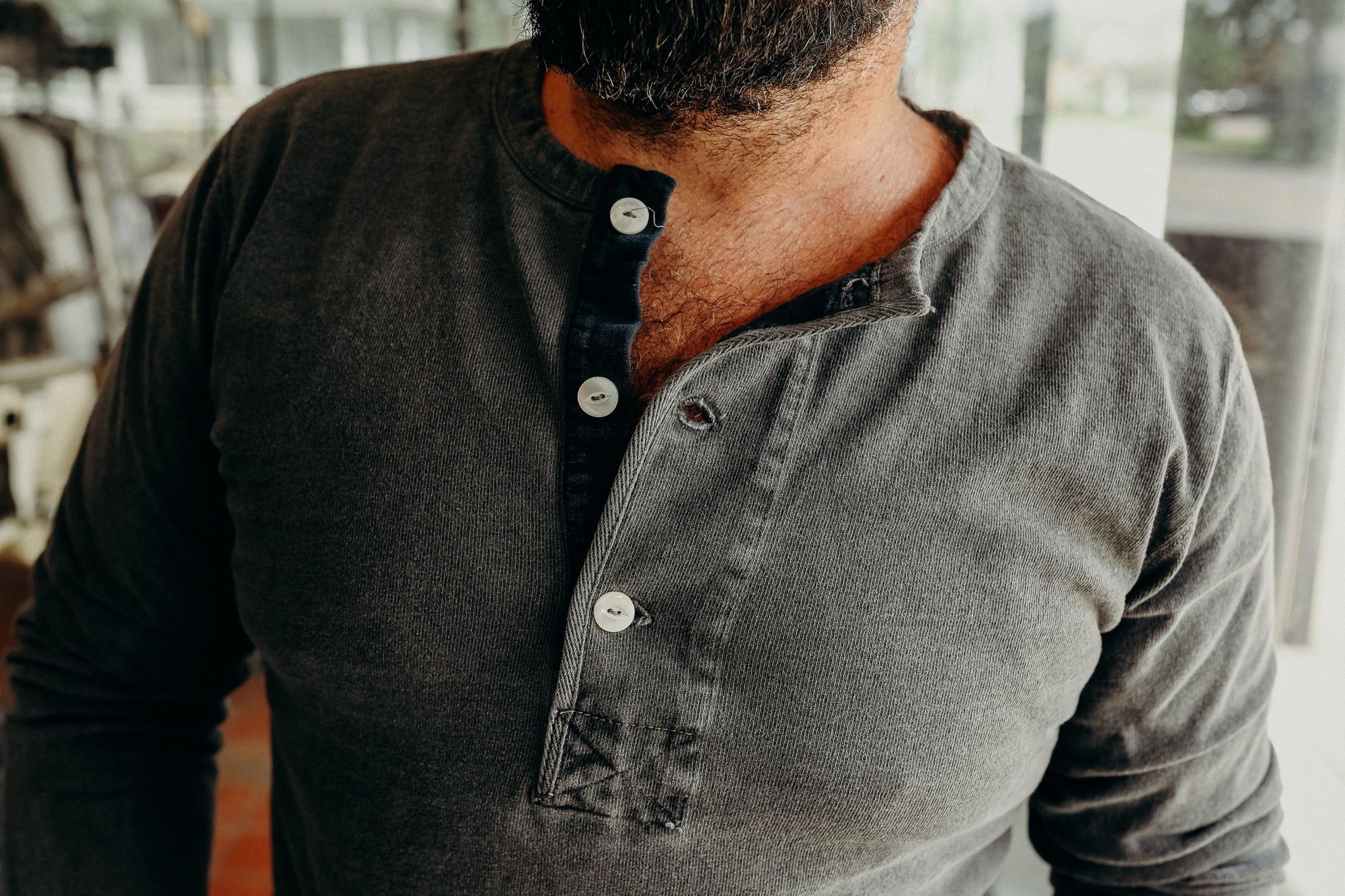 1213 Waffle Knit Long Sleeved Thermal Henley - Indigo Dyed IHTL-1213-IND