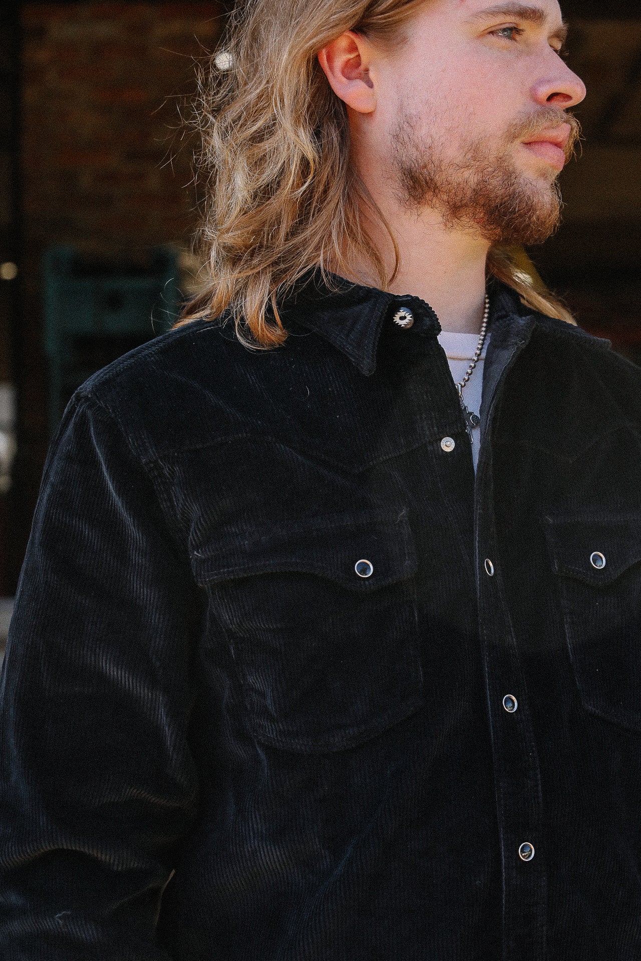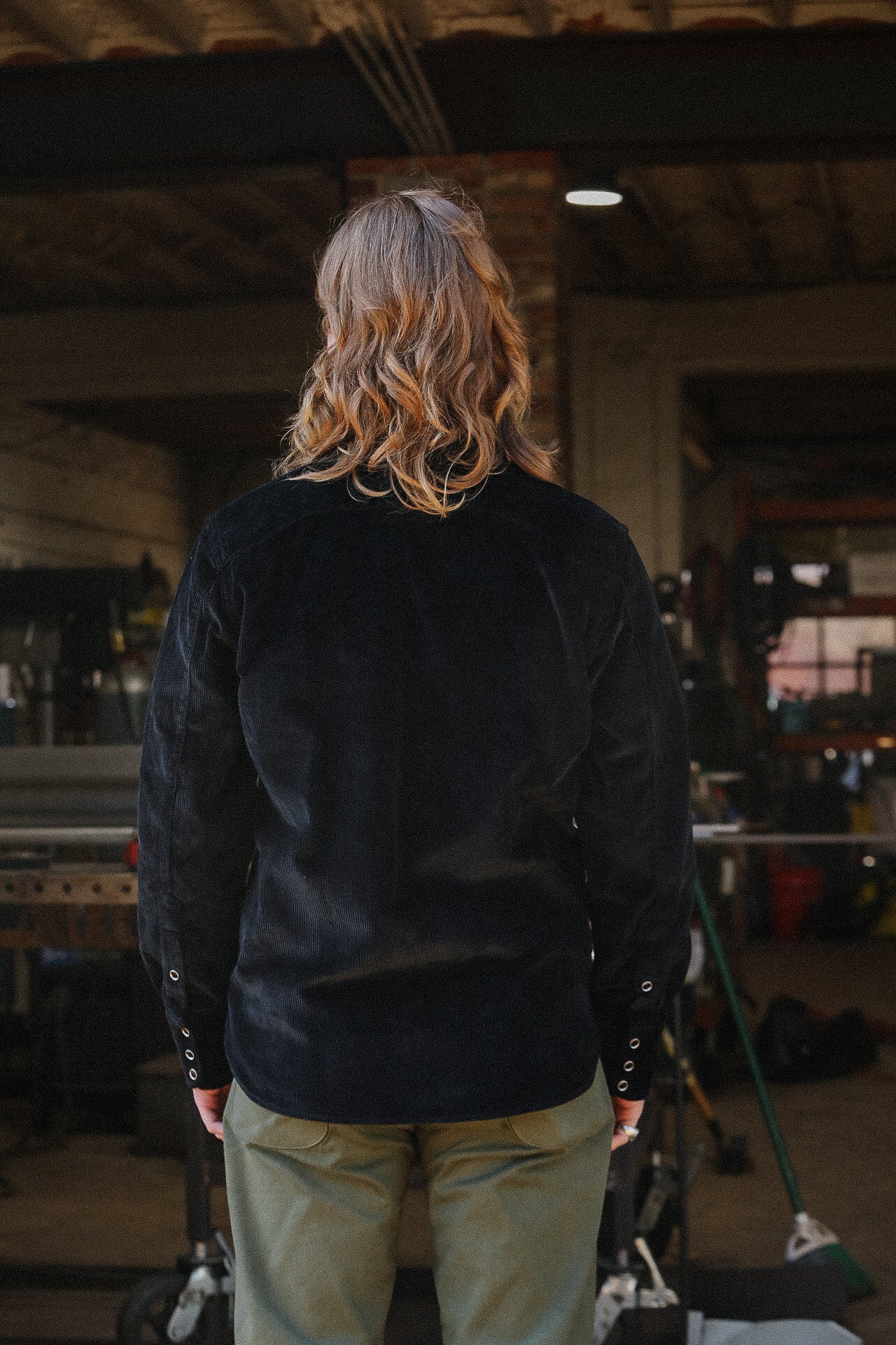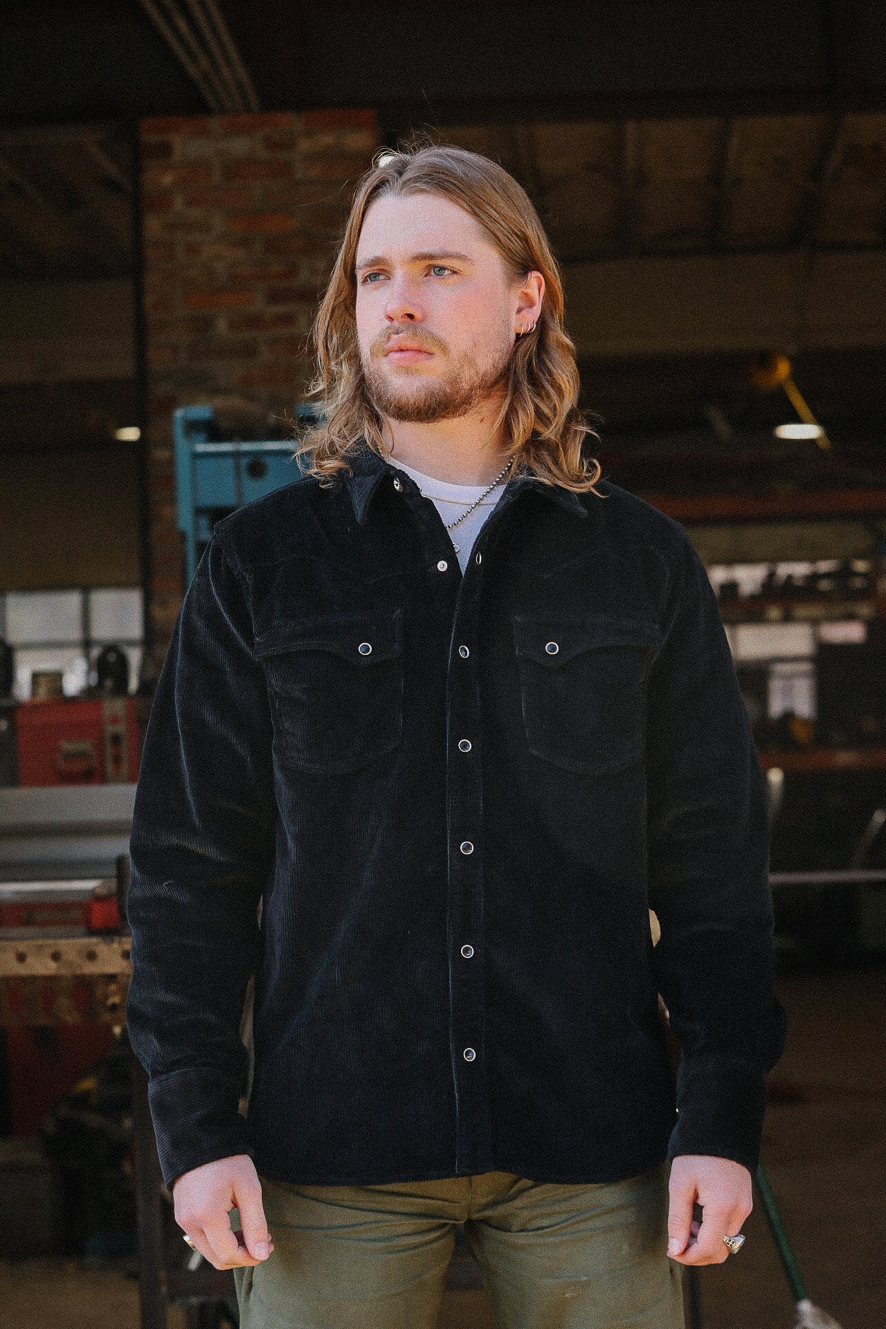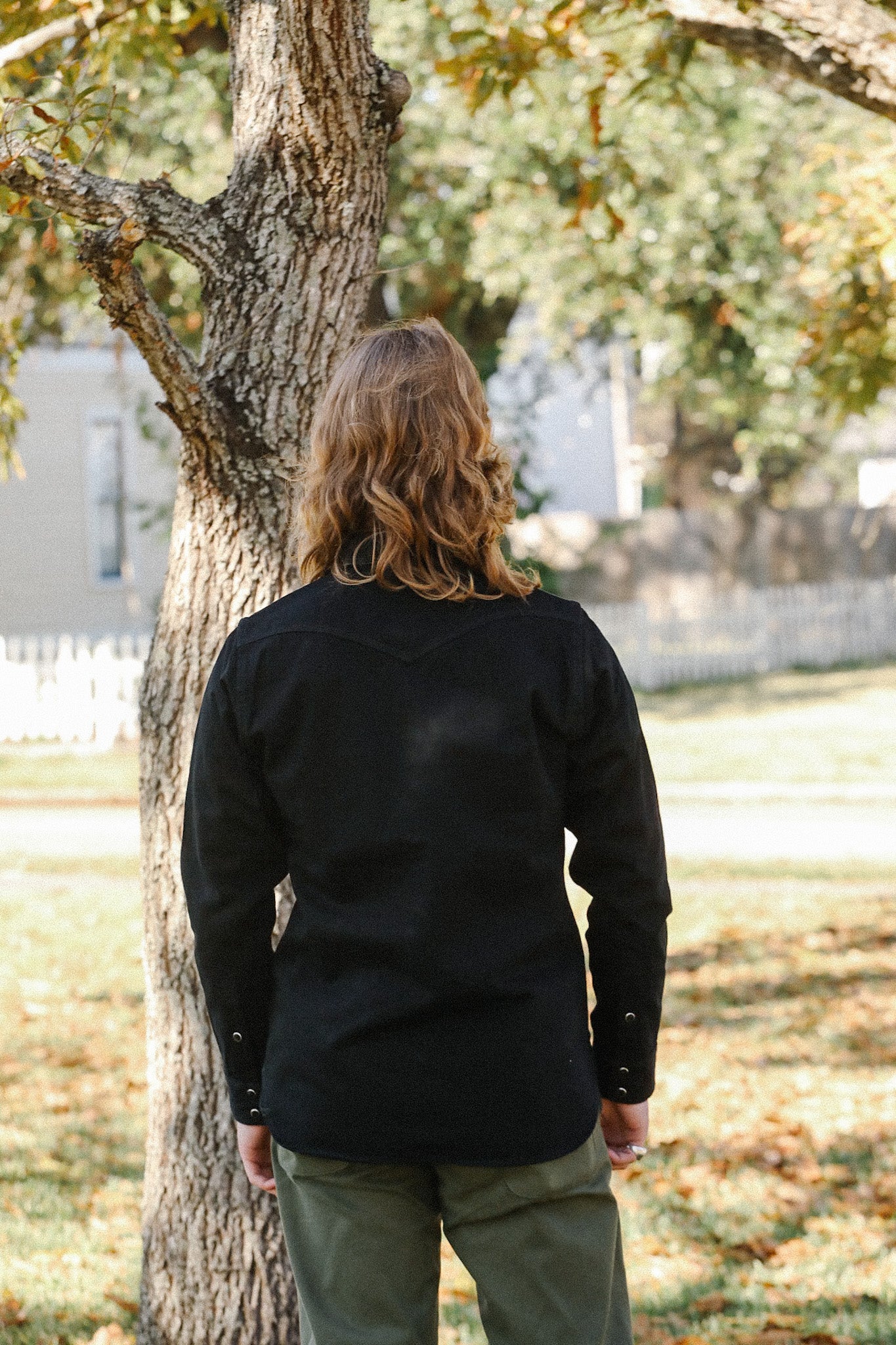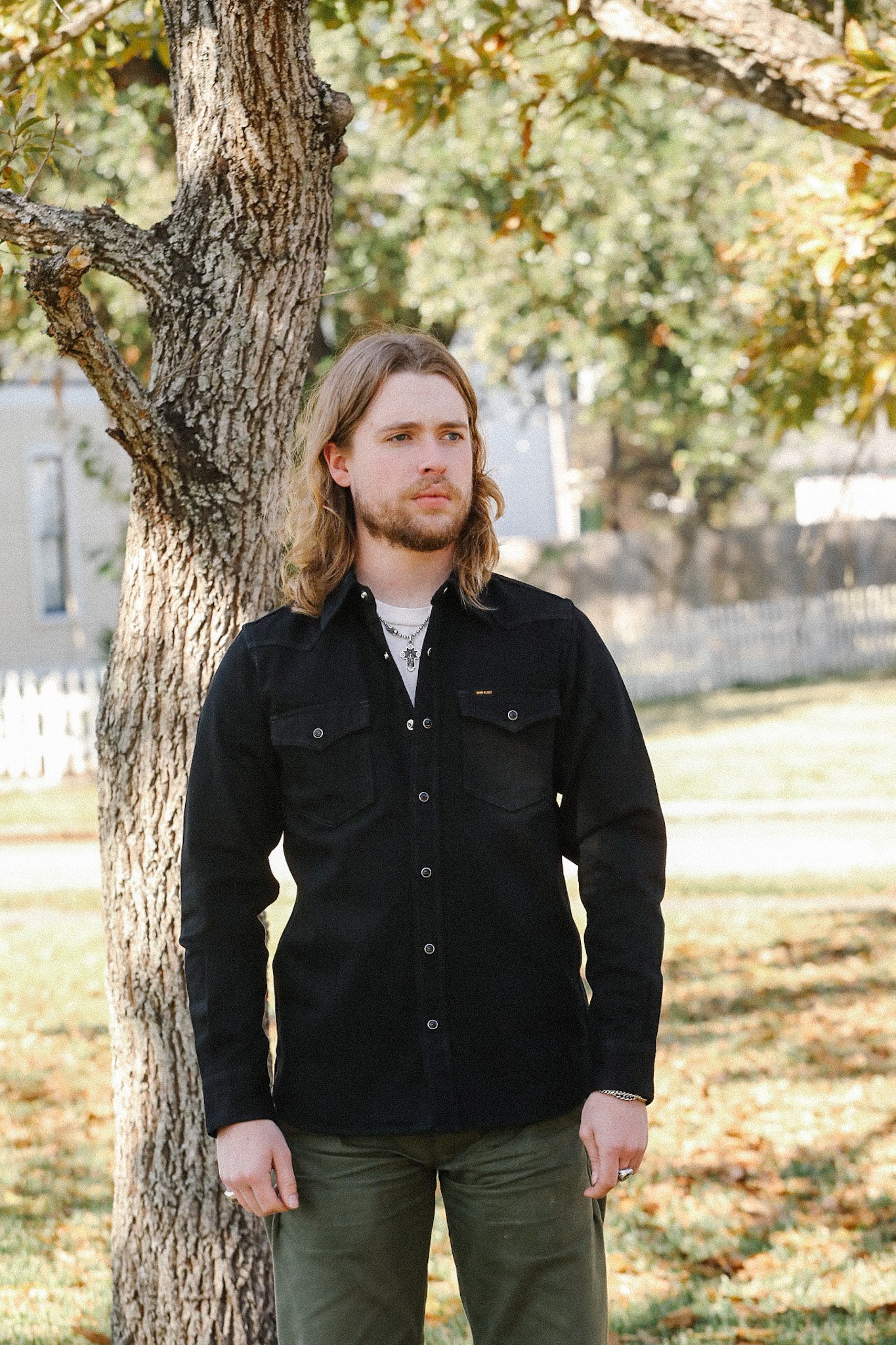 IHSH-218-BLK 12oz Selvedge Denim Western Shirt "The Johnny Cash III" - Black