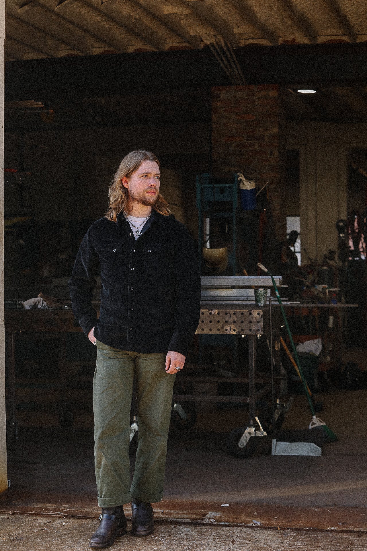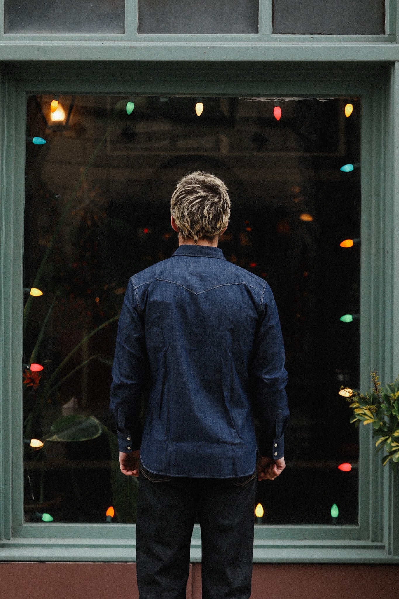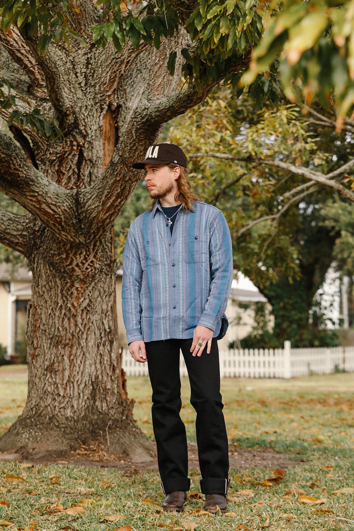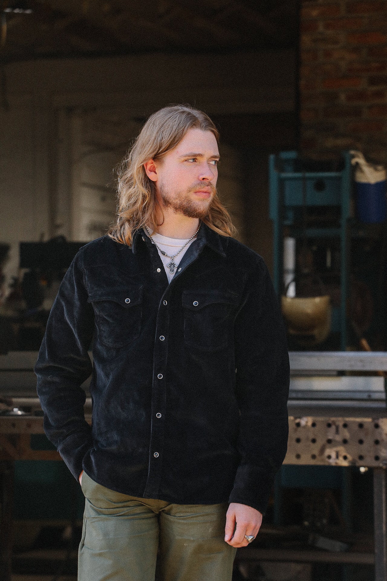 IHSH-218-BLK 12oz Selvedge Denim Western Shirt "The Johnny Cash III" - Black