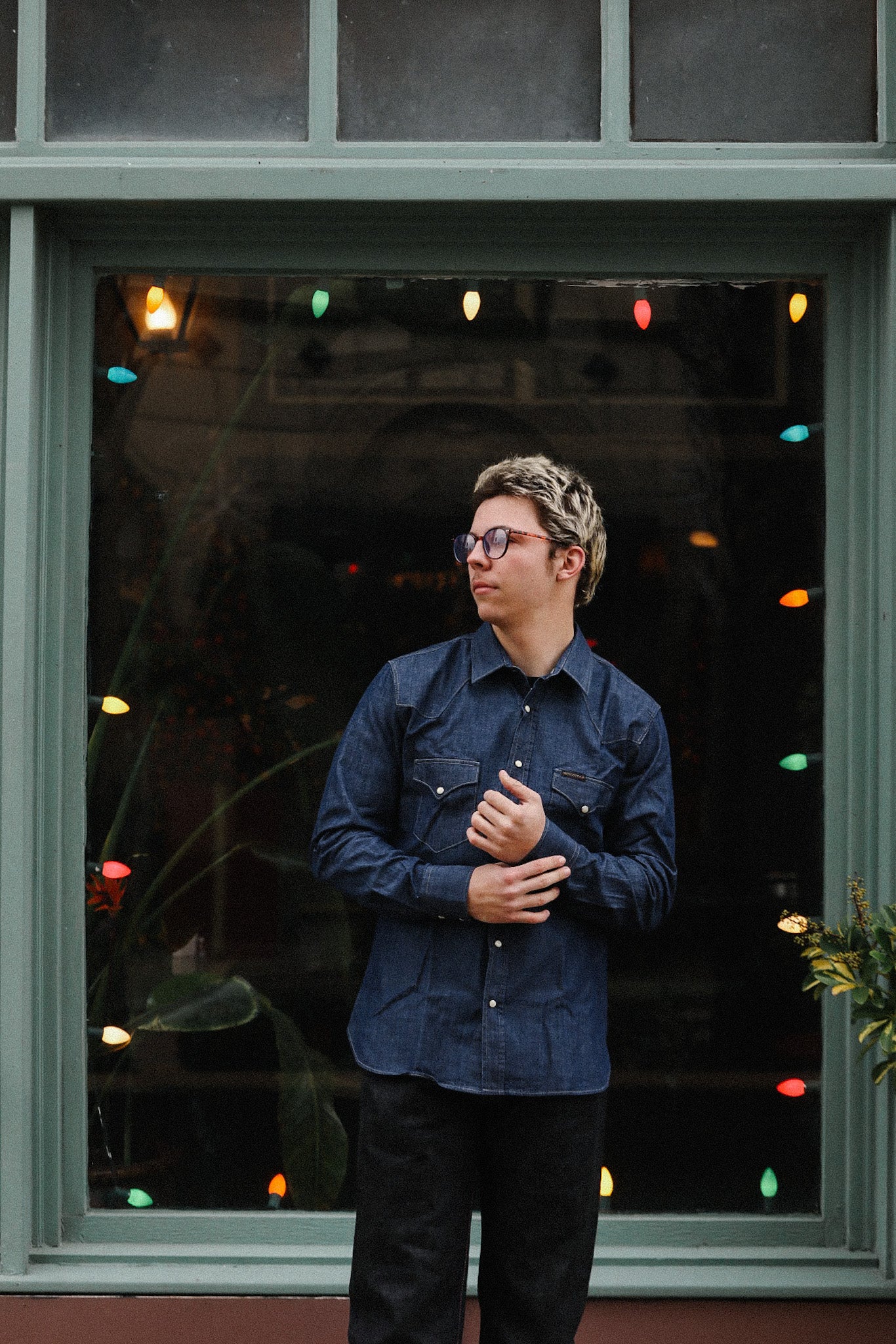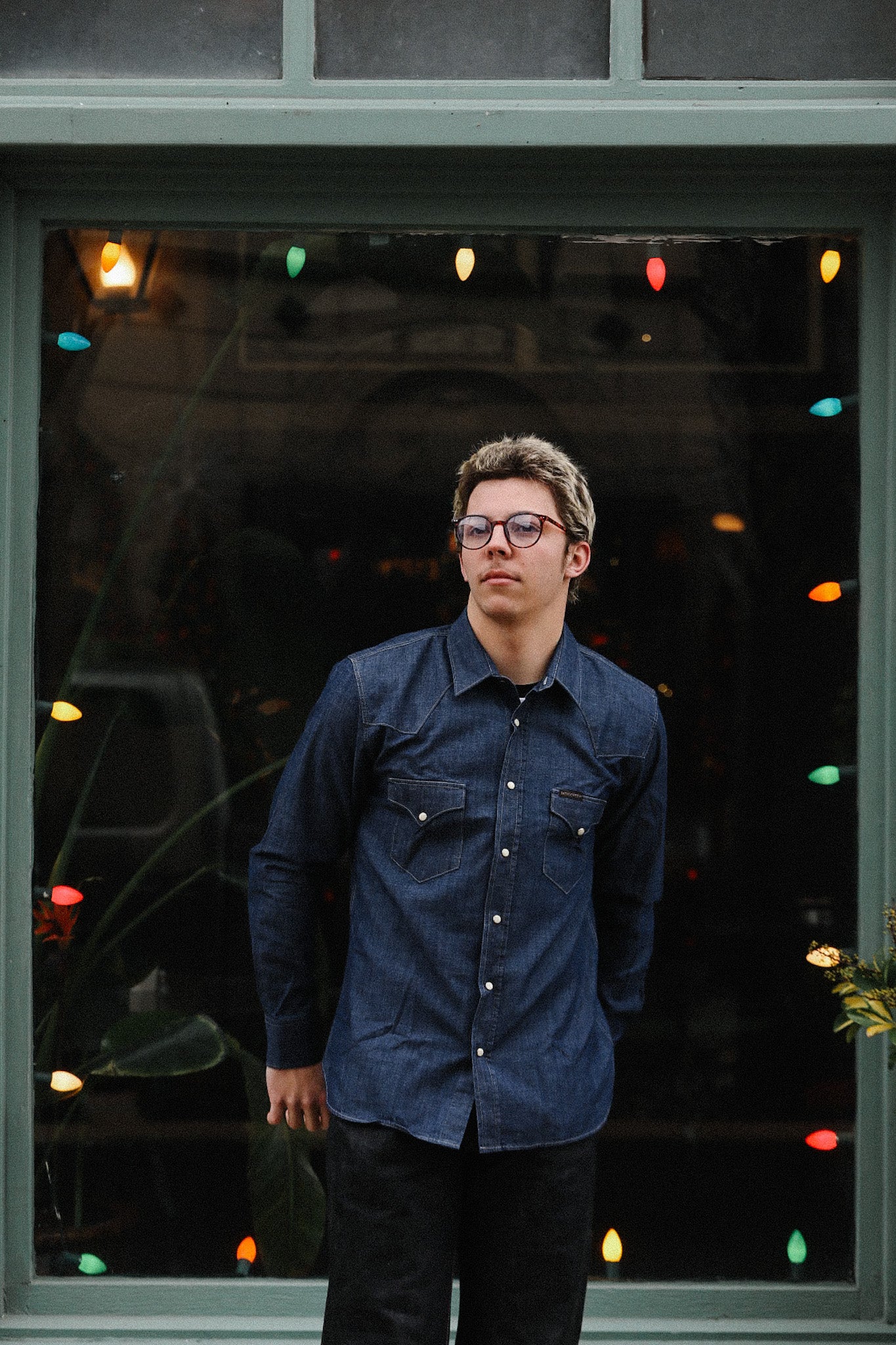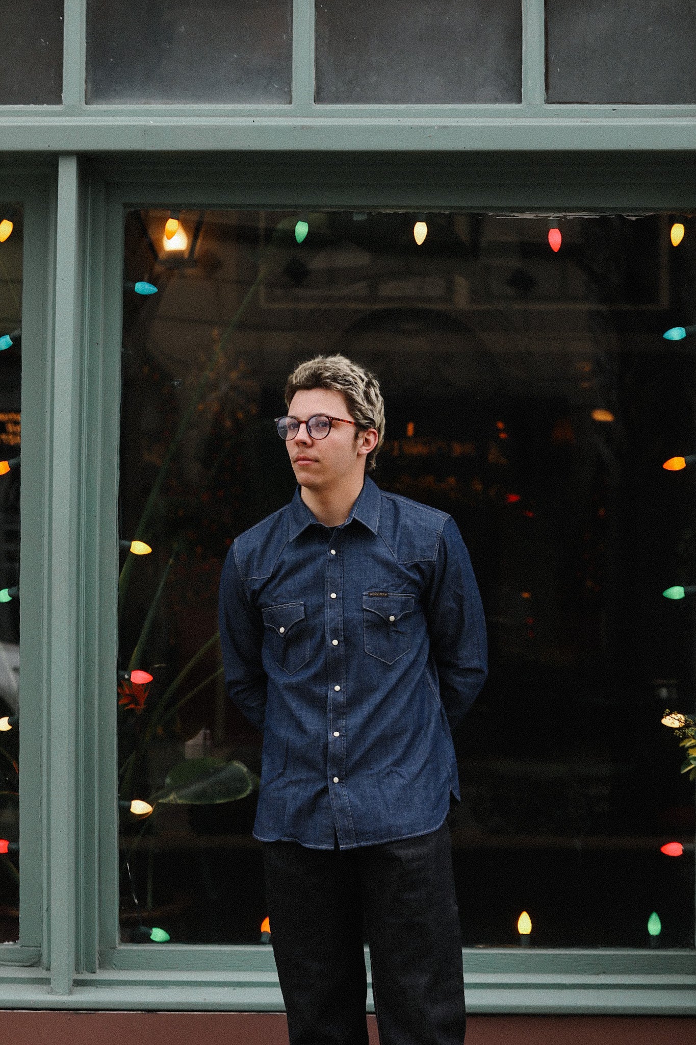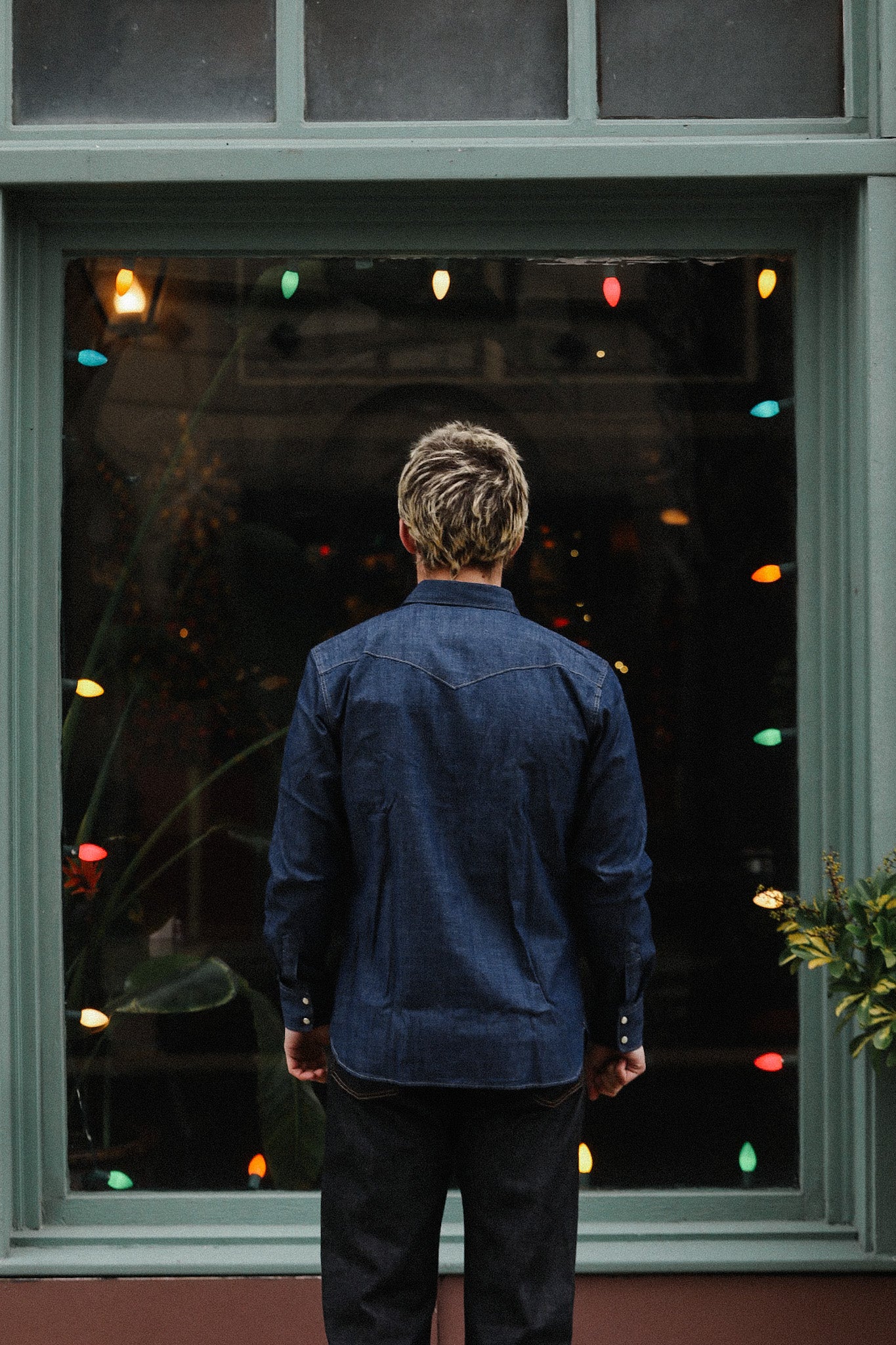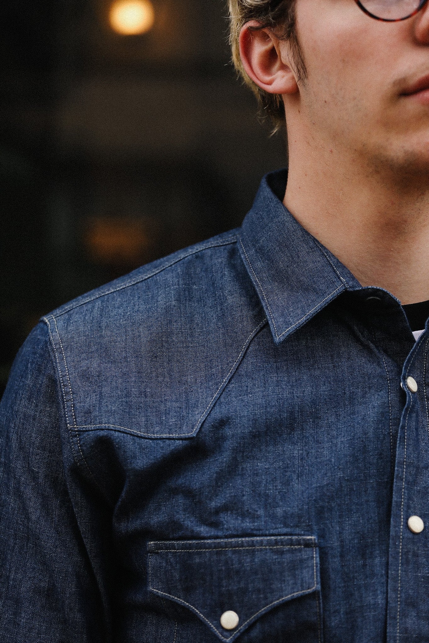 IHSH-218-BLK 12oz Selvedge Denim Western Shirt "The Johnny Cash III" - Black