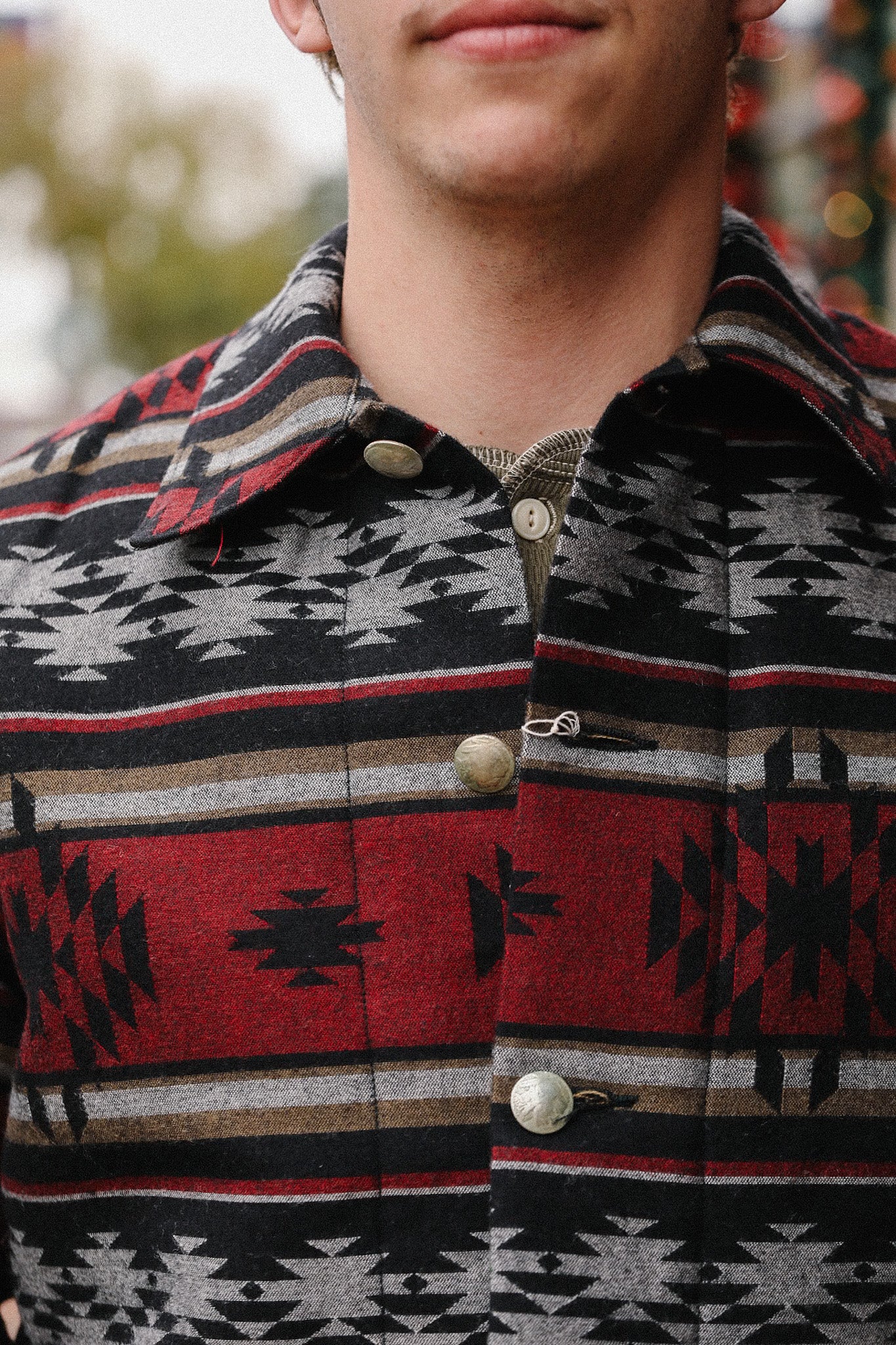 SC15827- Native American Jacquard Wool/Cotton Padded Work Jacket - Red/Black