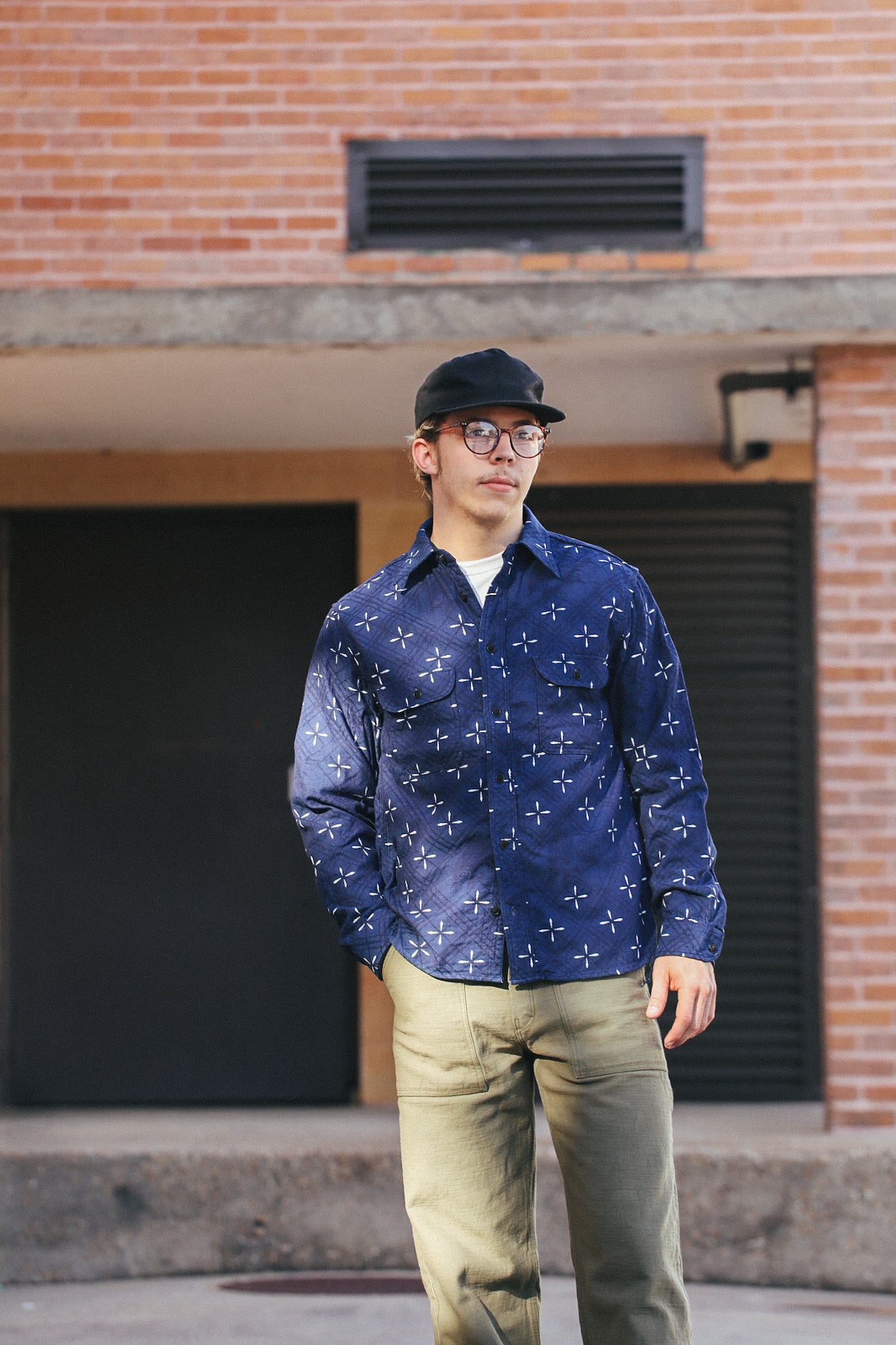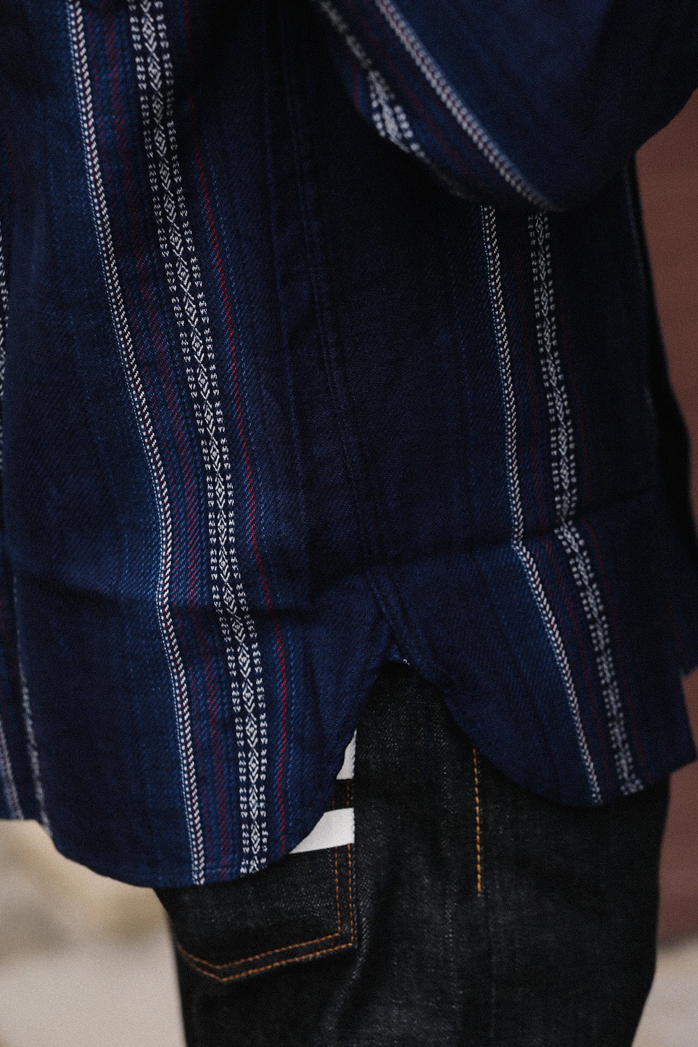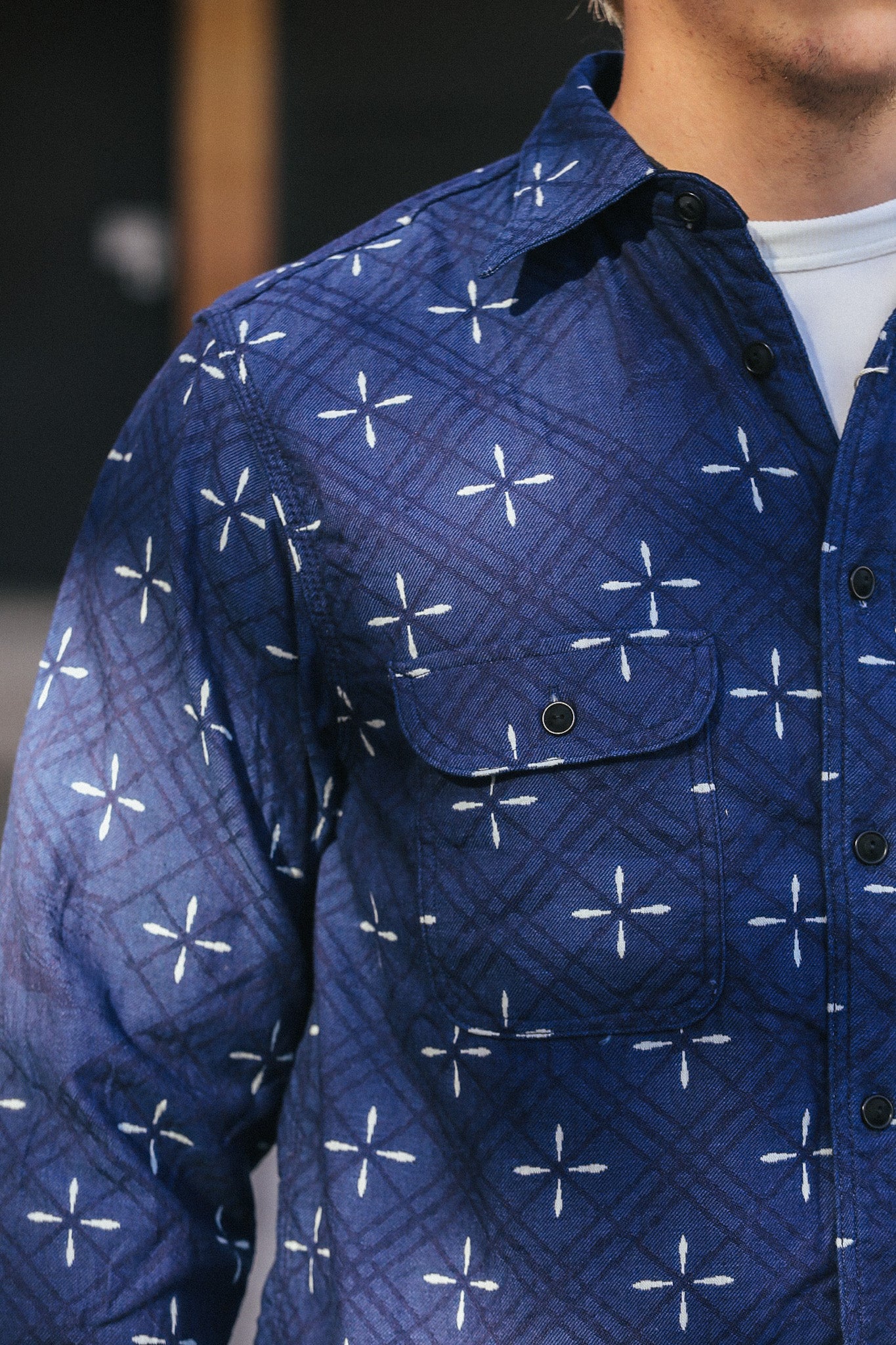 SSS25-02 Narihirabishi Goldfish Pattern Jacquard Work Shirt- Indigo