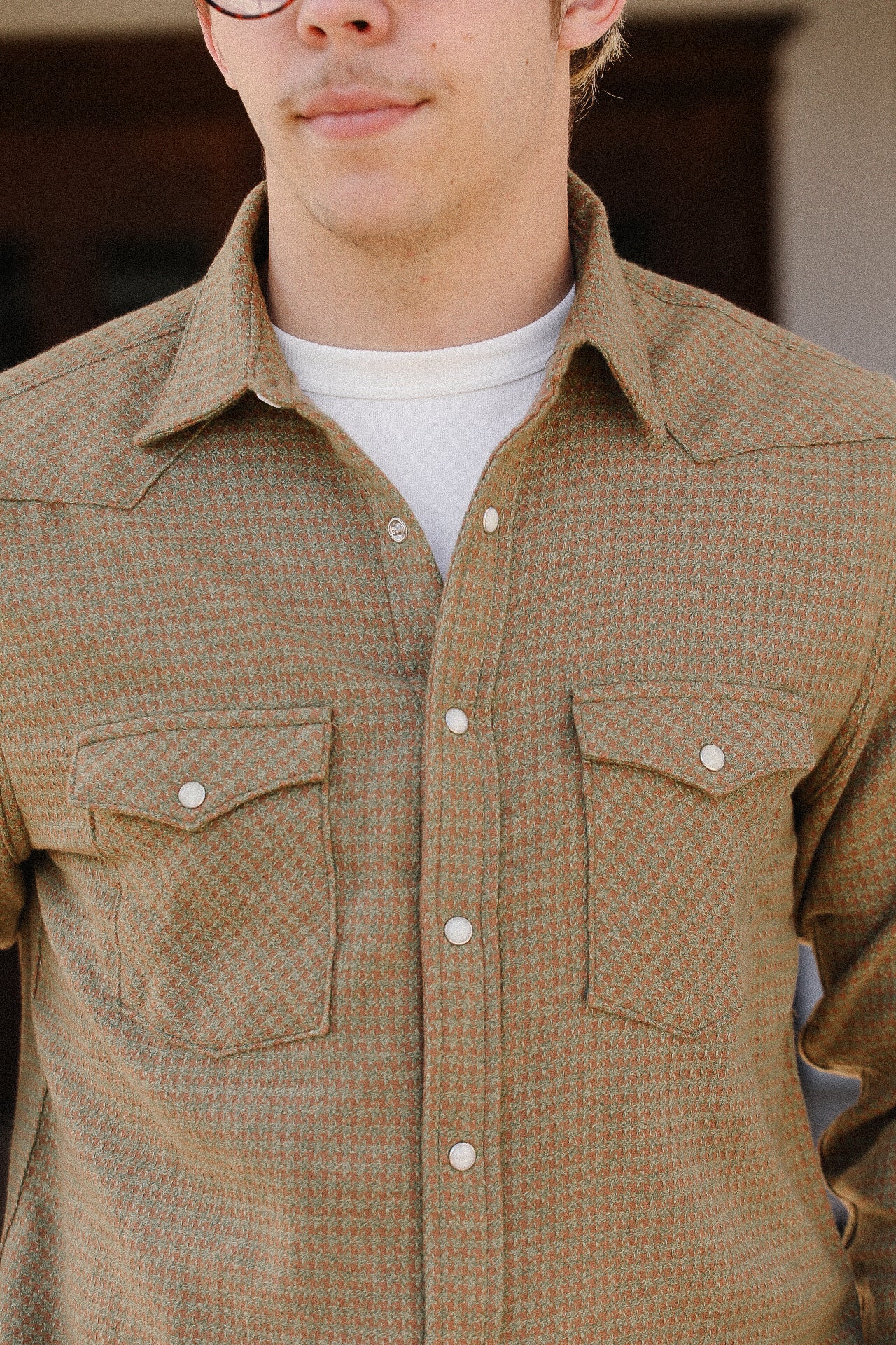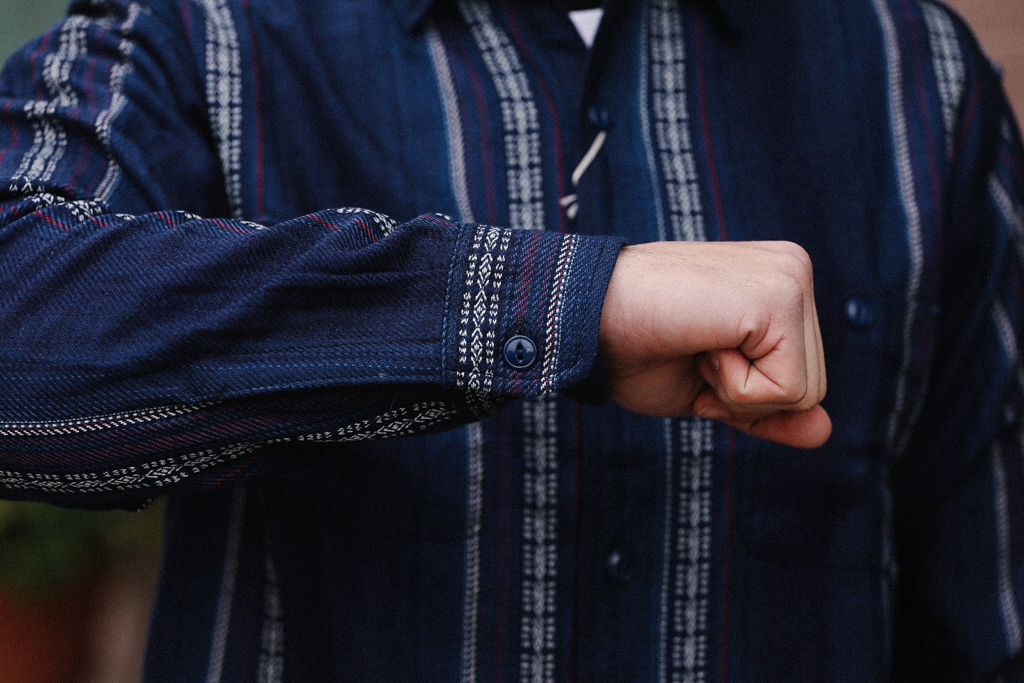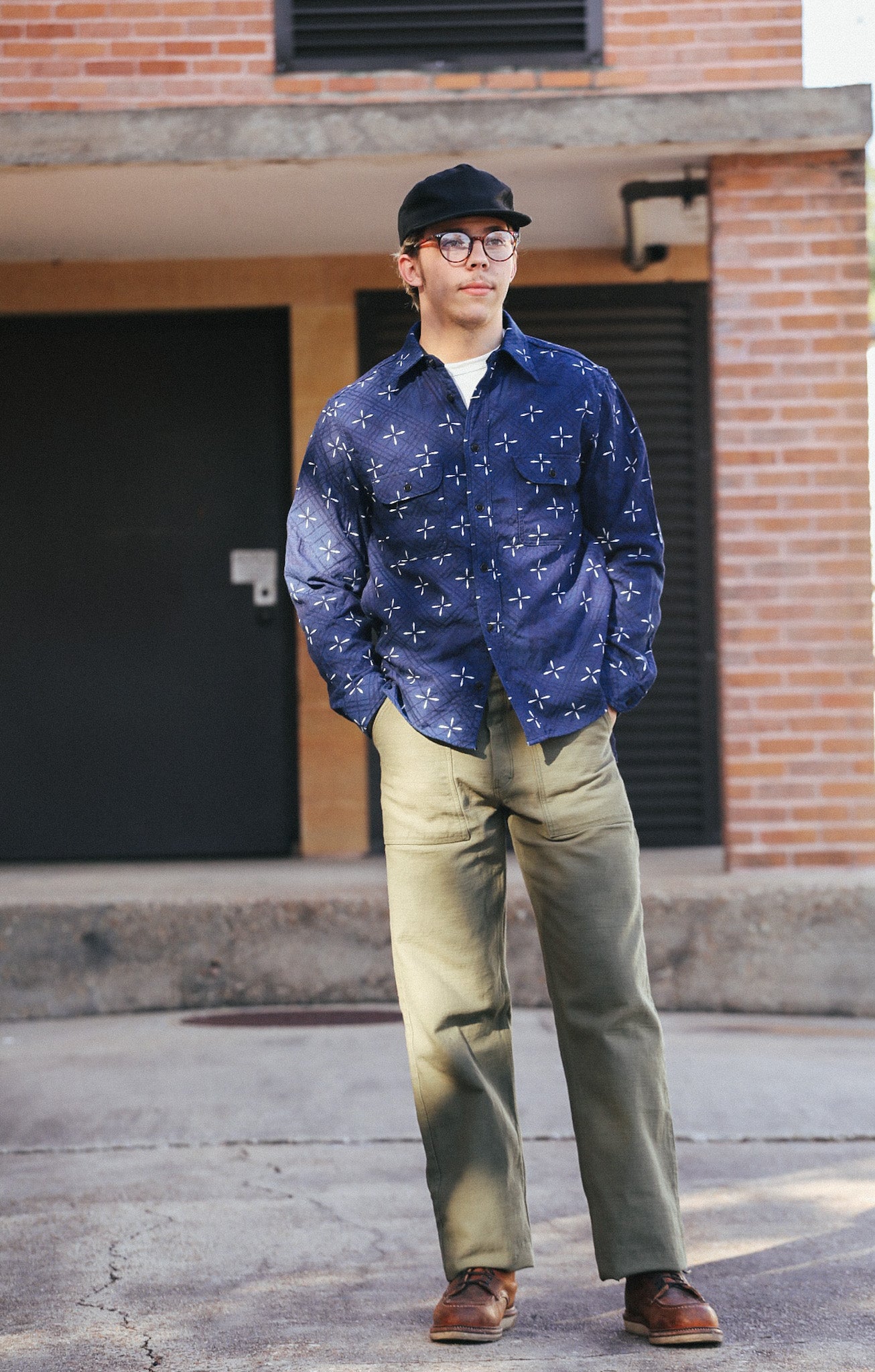SSS25-02 Narihirabishi Goldfish Pattern Jacquard Work Shirt- Indigo