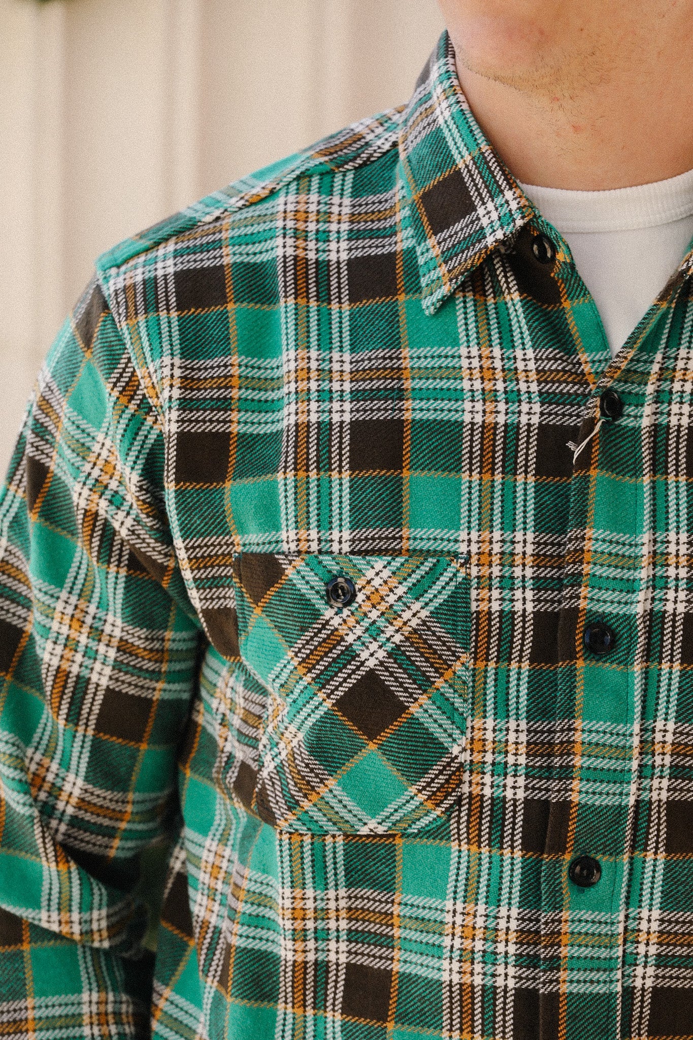 SC29564 Twill Check Work Shirt - Green/Yellow