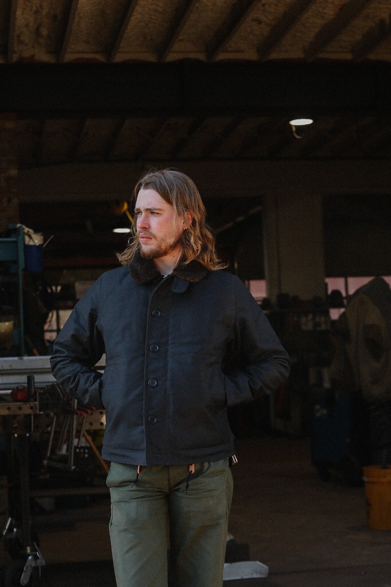 IHM-37-BLK Oiled Whipcord N1 Deck Jacket - Black