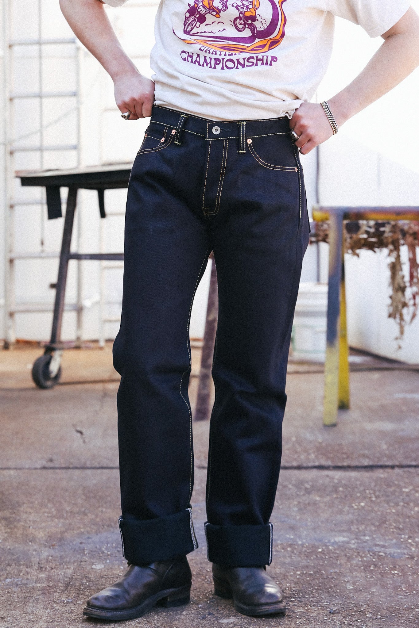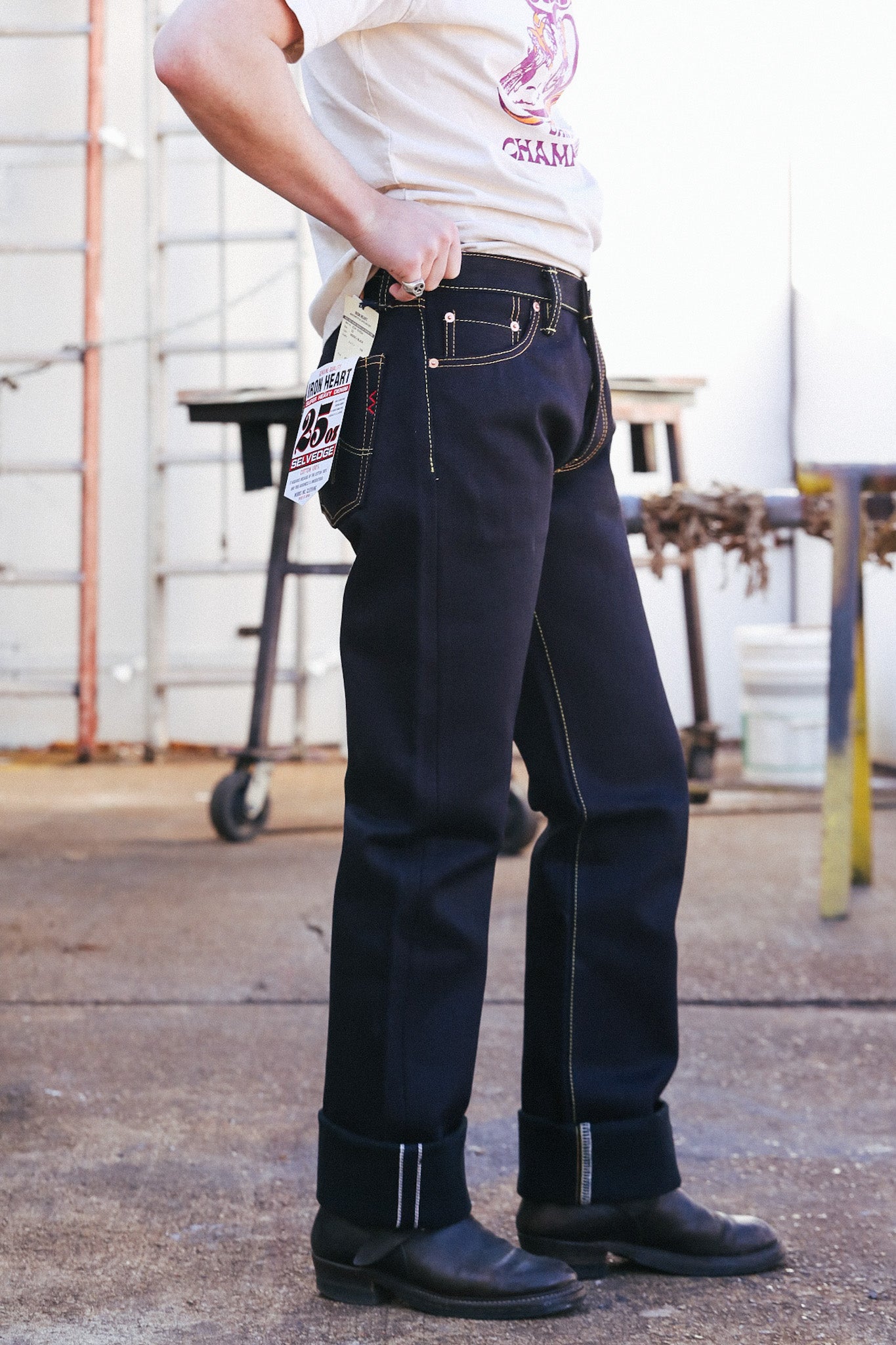 IH-634-XHSib 25oz Selvedge Denim Straight Cut Jeans - Indigo/Black