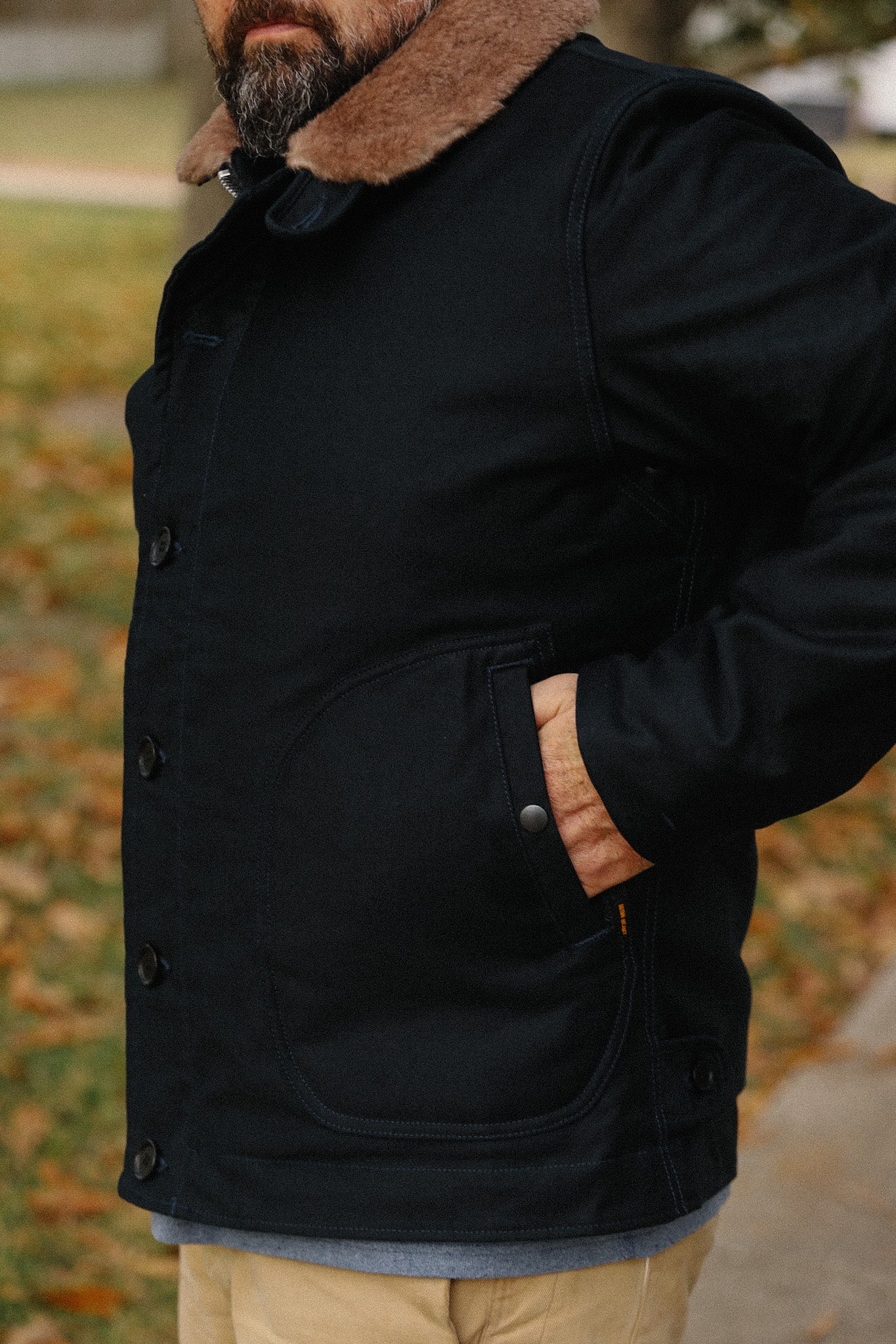 12oz Whipcord Lightweight N1 Deck Jacket - Black IHM-48-BLK