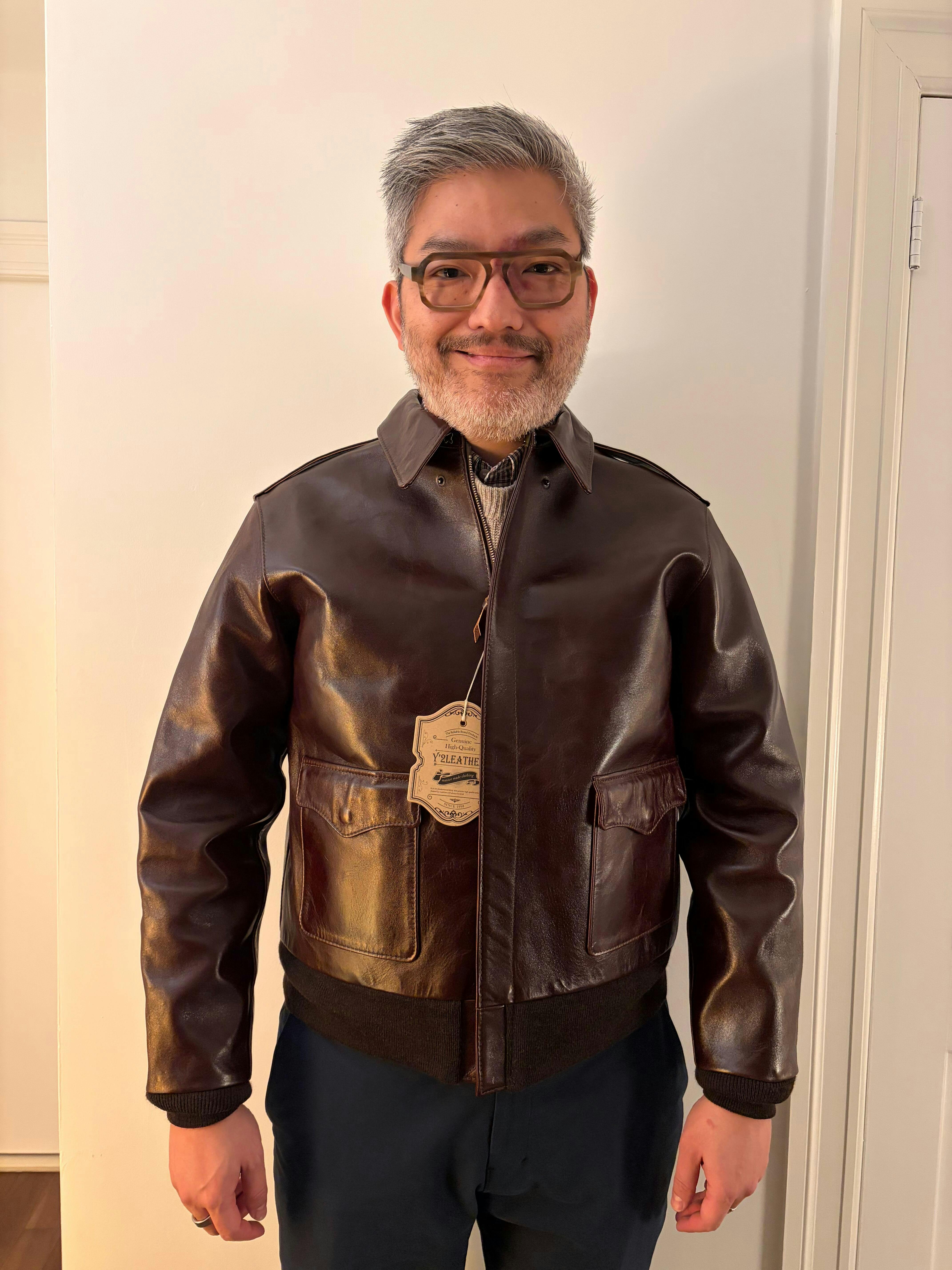 It took a considerable amount of time to obtain vintage samples, construct the pattern, and express the details, but the result is a piece that can be presented with confidence as "Y'2LEATHER's" first A-2.